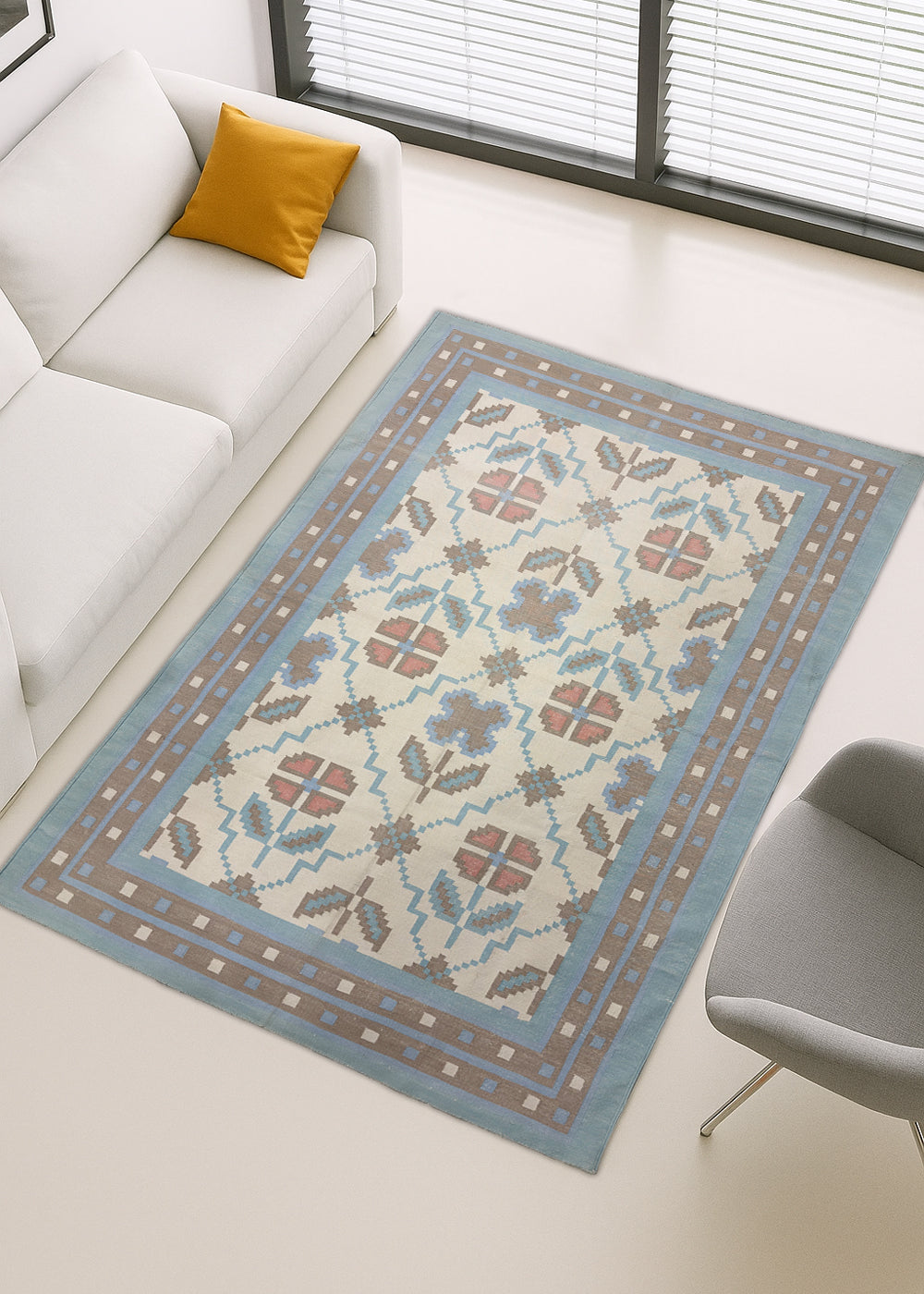 Niva Bloom – Hand Woven Cotton Rug in Powder Blue/Taupe