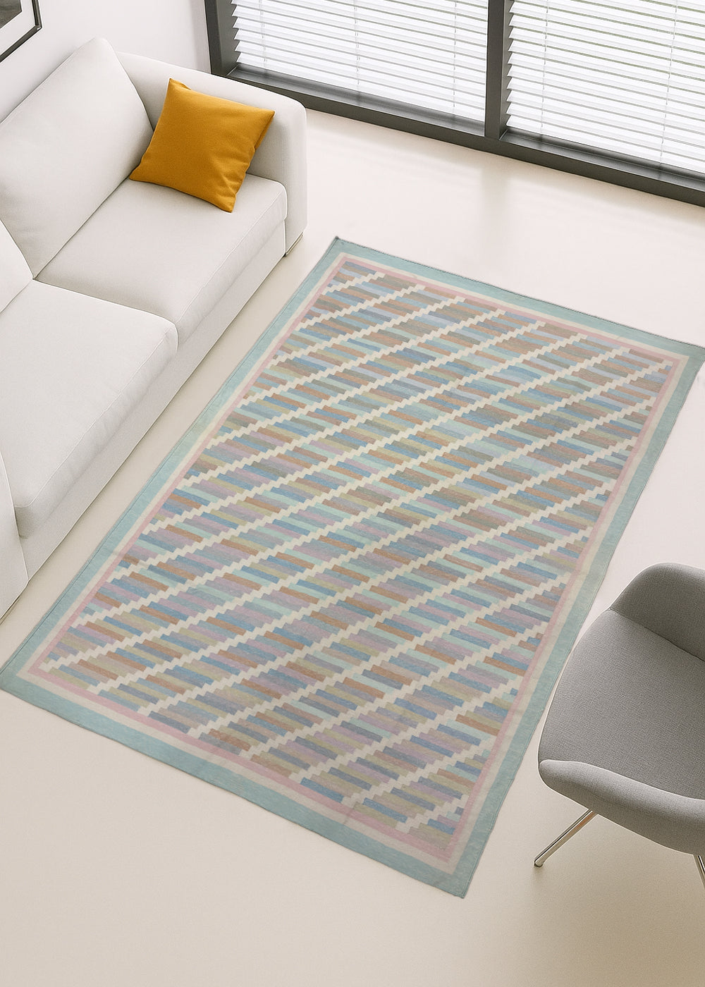 Aarohi Prism – Hand Woven Cotton Rug in Pastel Multicolor