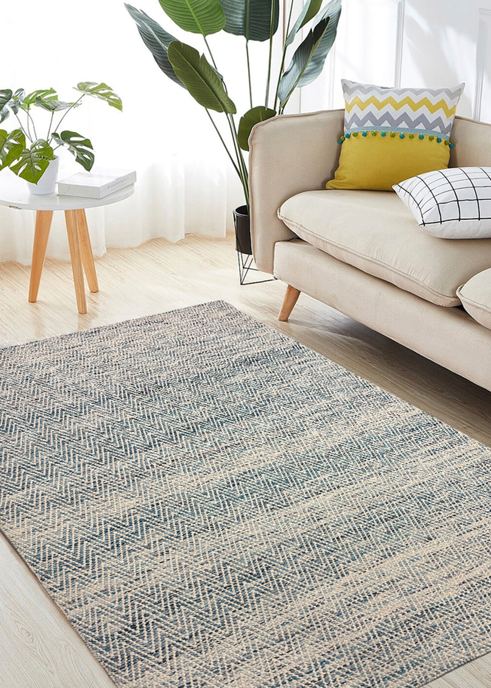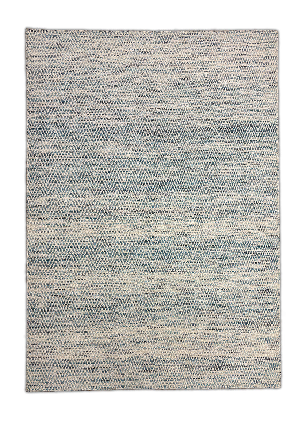 Neer Kavya – Hand Woven Wool Rug in Sky Blue/Cream