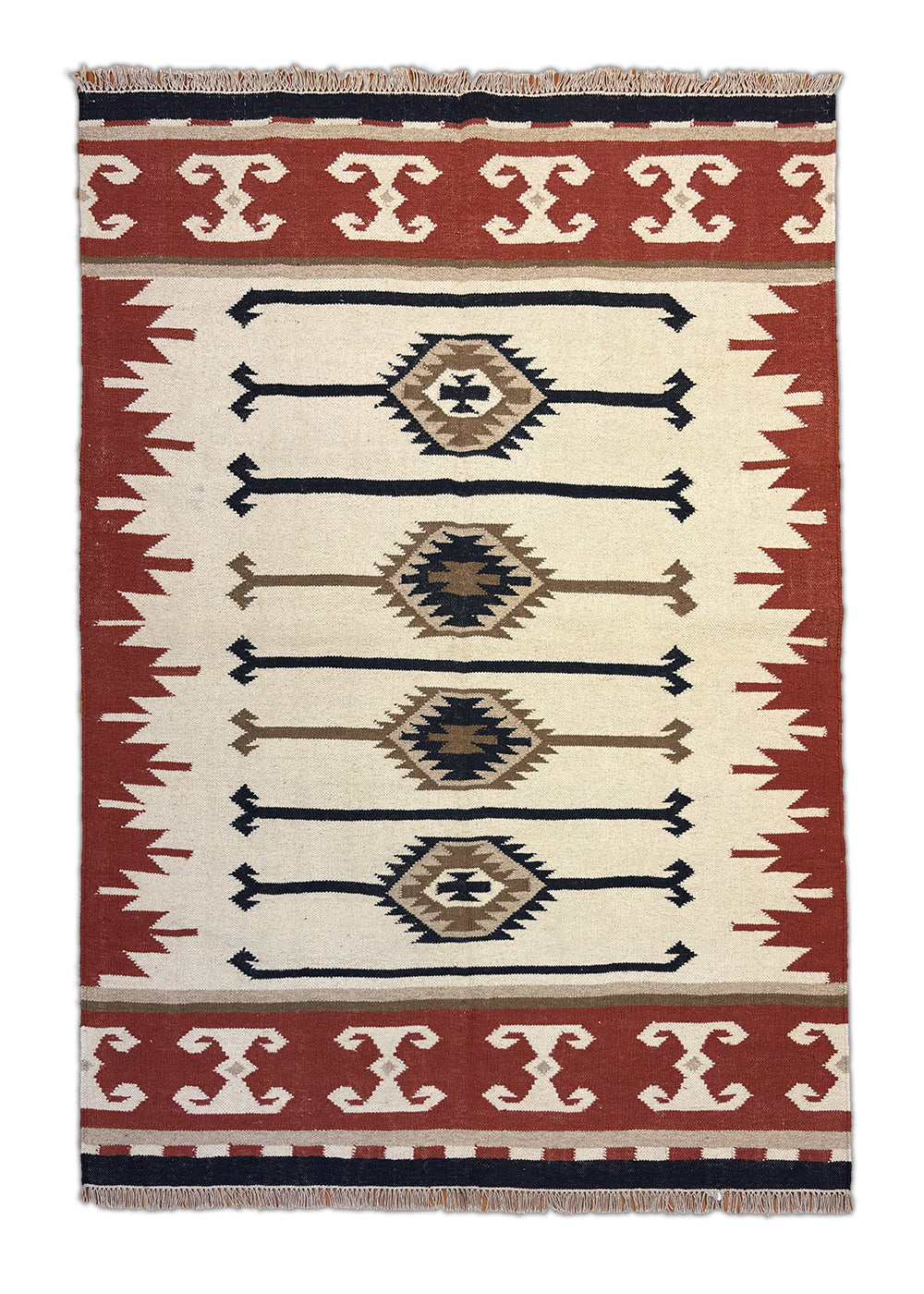 Kiaan Dastaan – Hand Woven Wool Rug in Cream/Terracotta