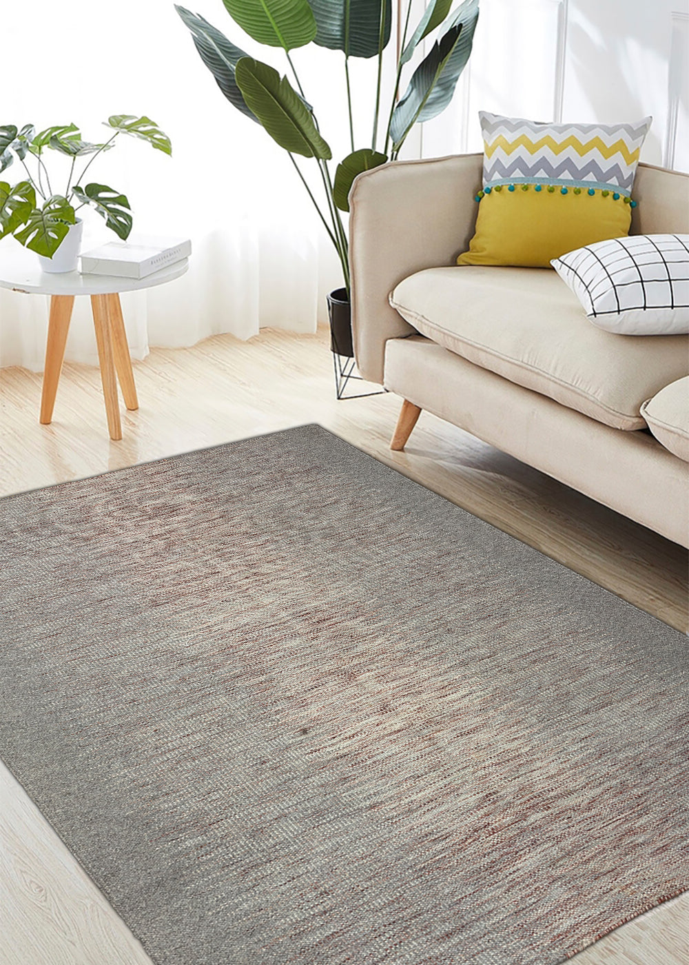 Aabha Rekha – Hand Woven Wool Rug in Silver Grey/Rose Taupe