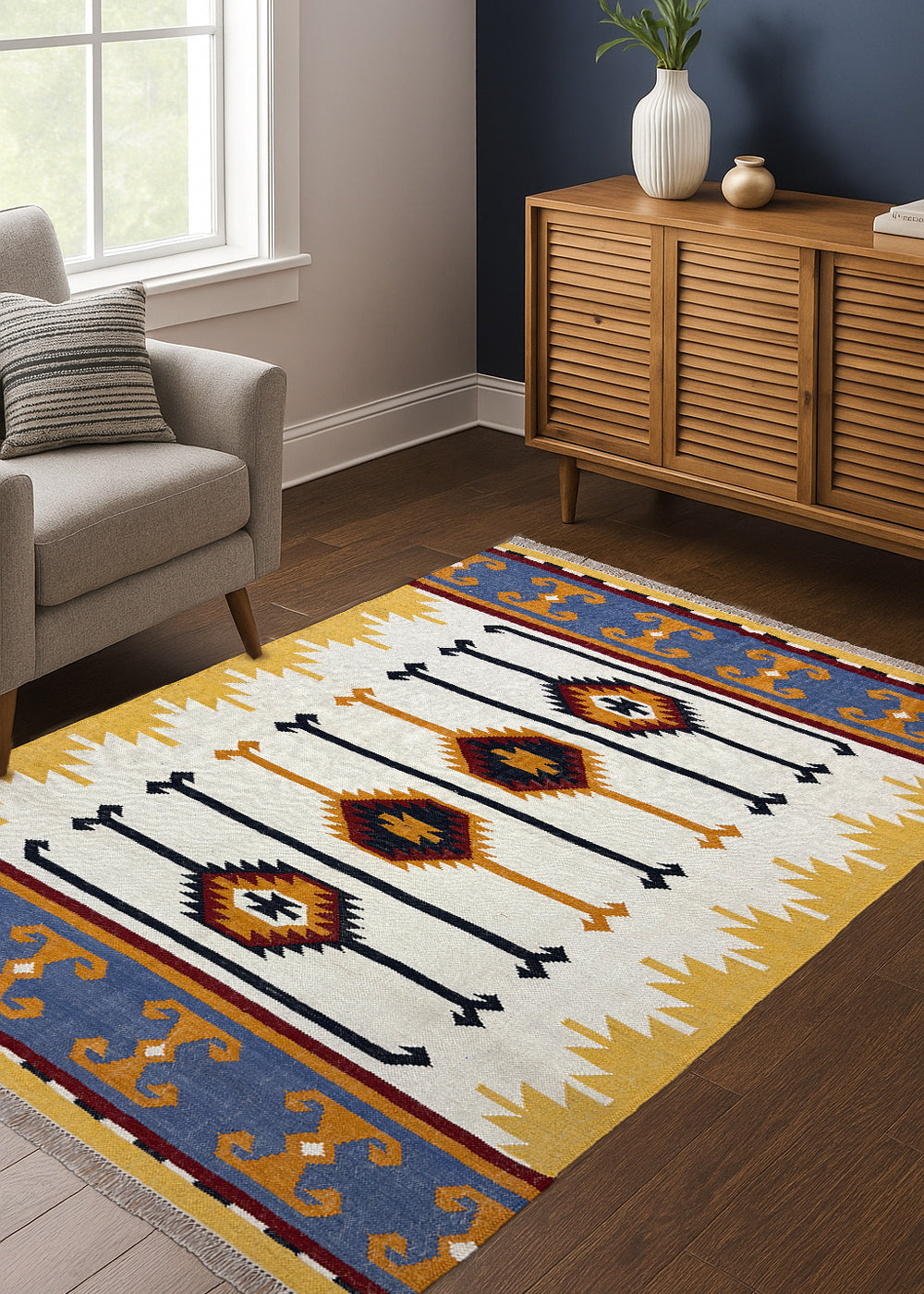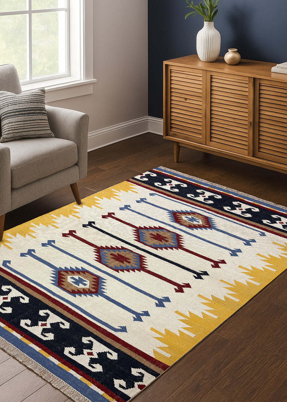 Taana Safar – Hand Woven Wool Rug in Ivory/Mustard