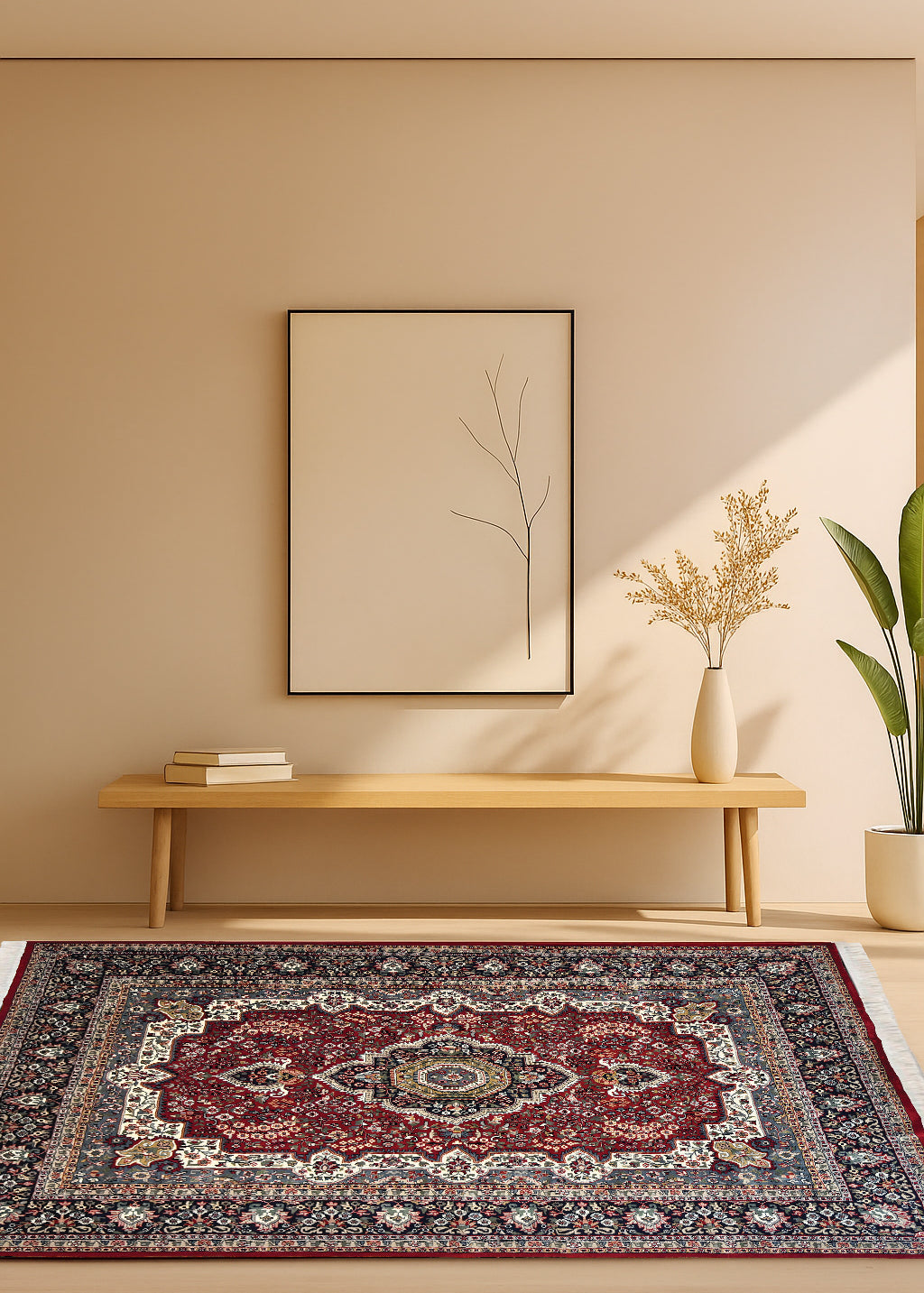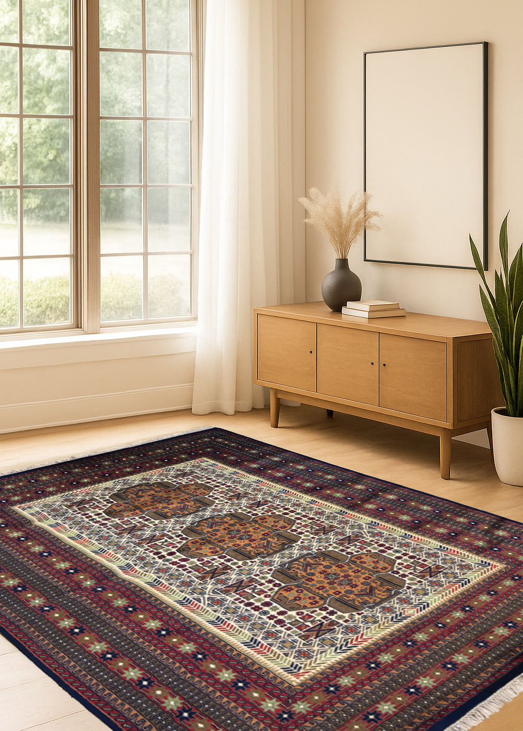 Samira - Hand Knotted Wool Rug in Crimson/Midnight Blue