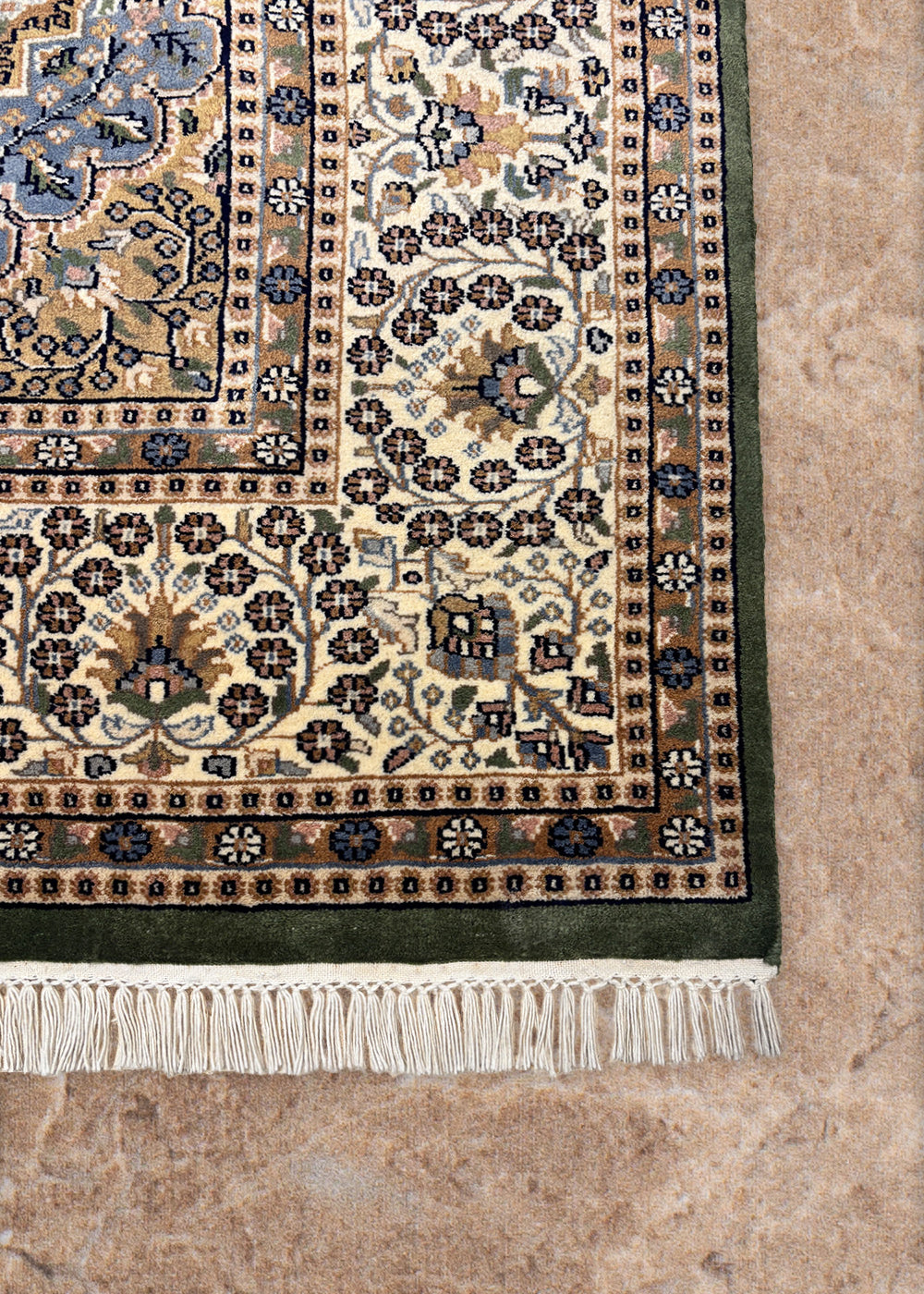 Parnav - Hand Knotted Wool Rug in Olive Green/Beige