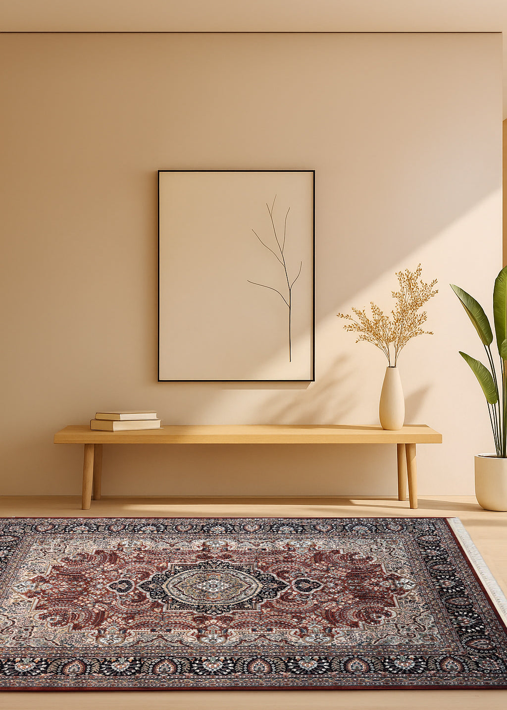 Khaaneh Bagh - Hand Knotted Wool Rug In Russet/Brick Red