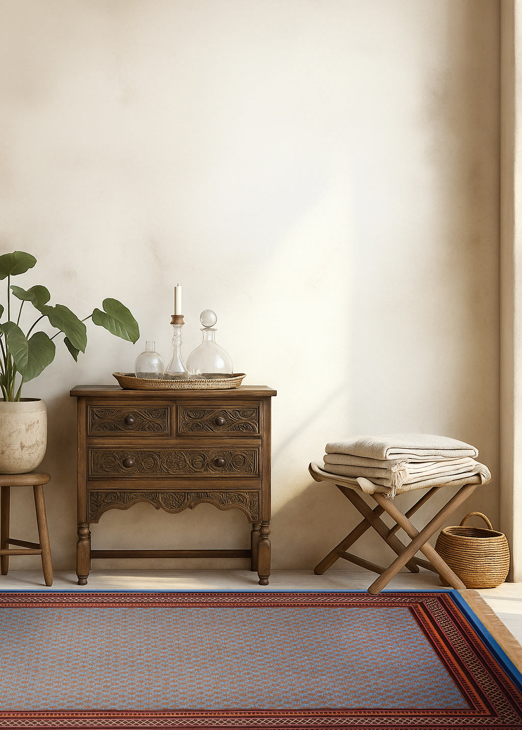 Safa - Hand Knotted Wool Rug In Rust/Blue