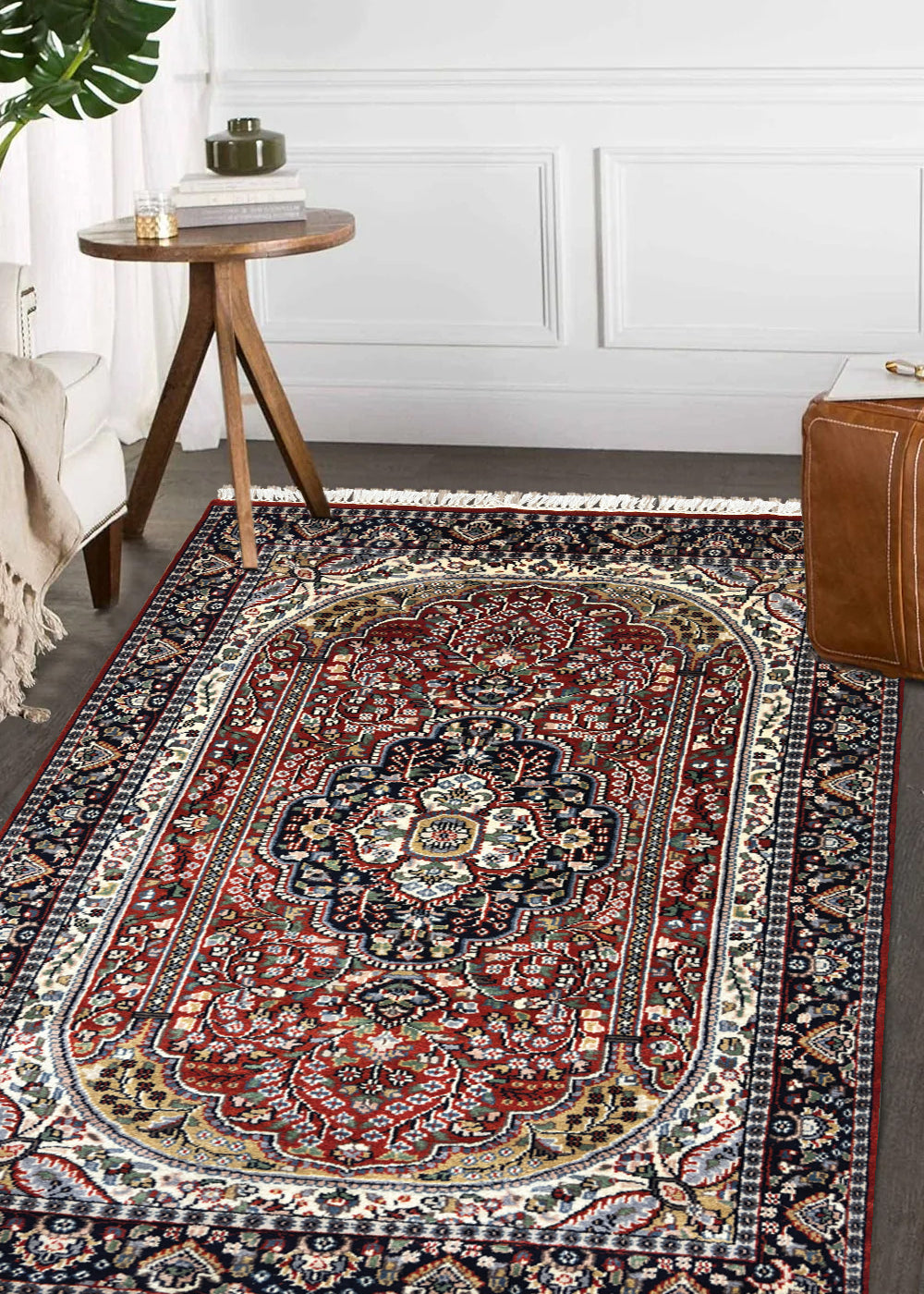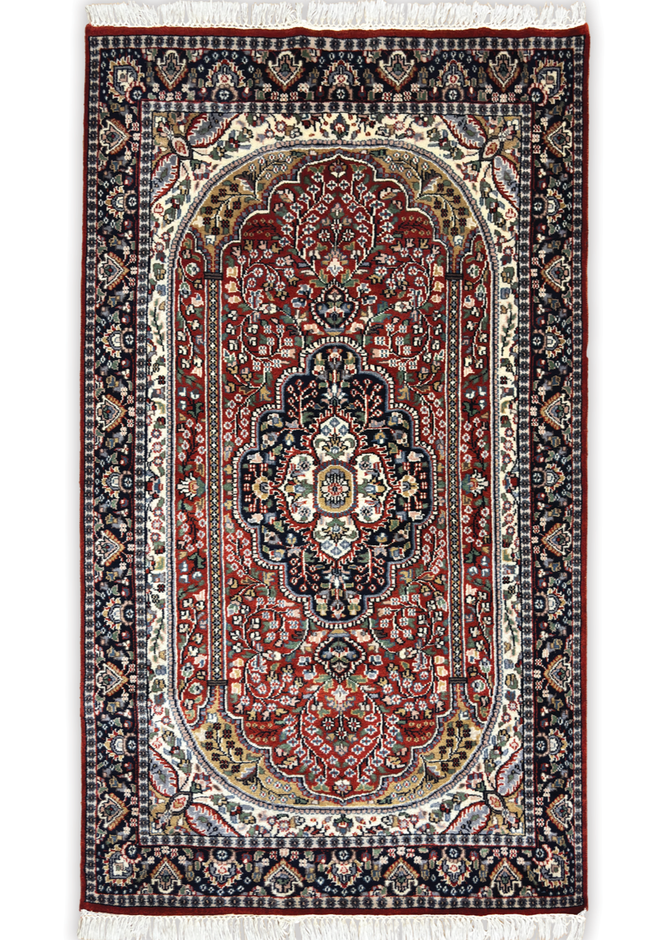 Samira - Hand Knotted Wool Rug in Crimson/Midnight Blue