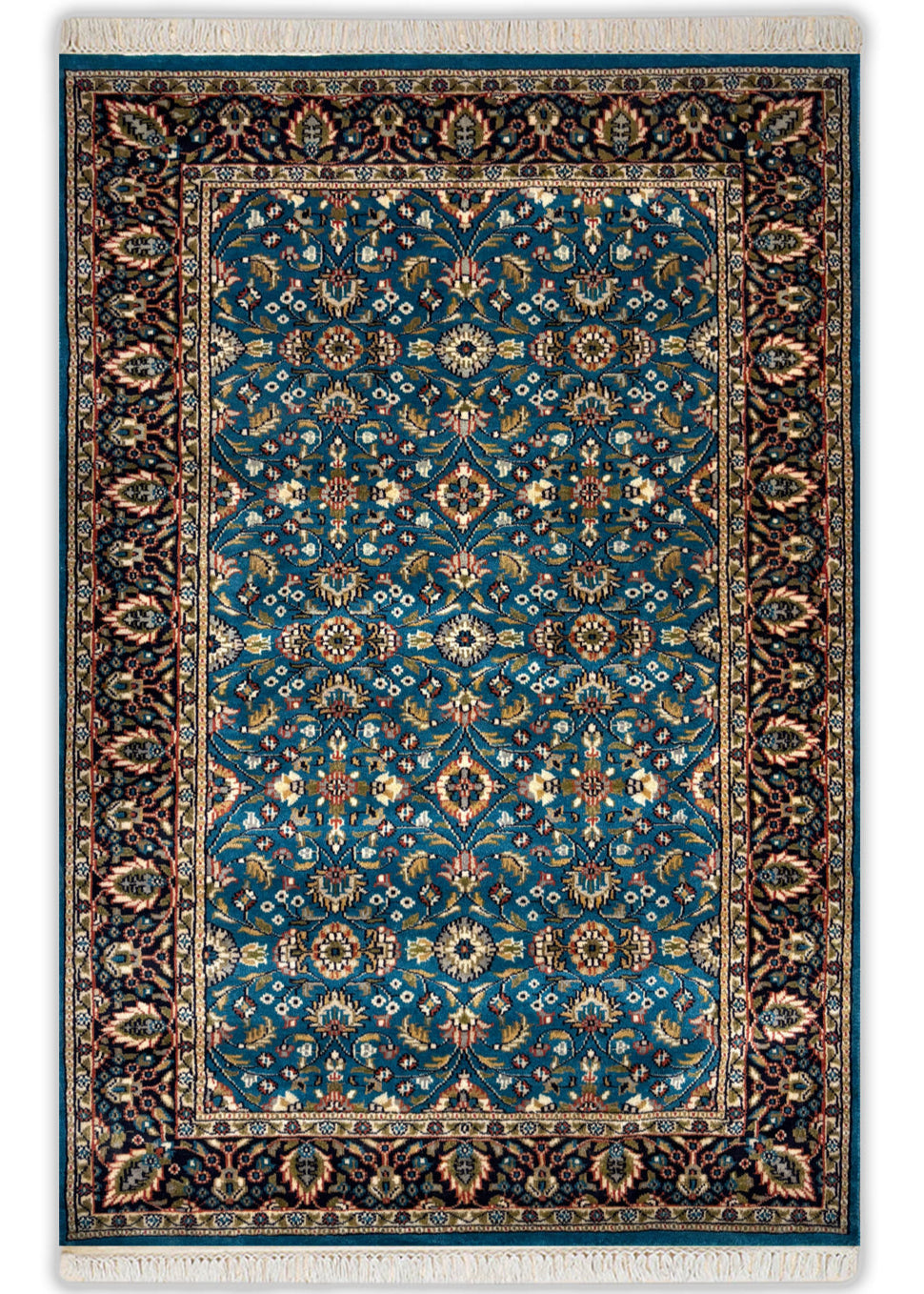 Samudra - Hand Knotted Wool Rug in Teal Blue/Deep Charcoal