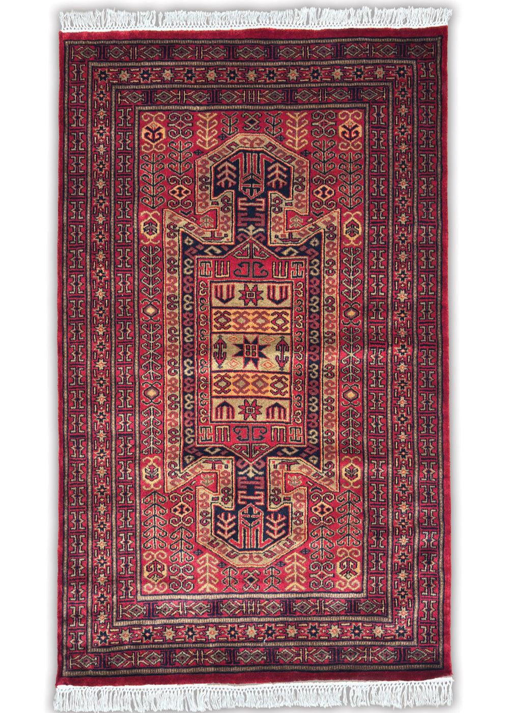 Suhaila - Hand Knotted Wool Rug in Crimson Red/Midnight Blue