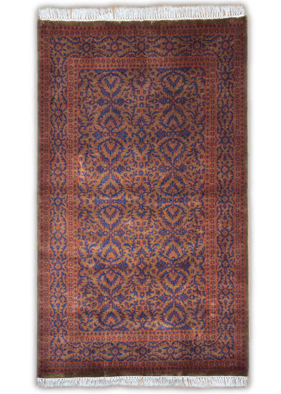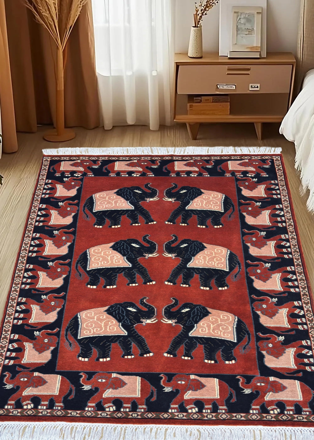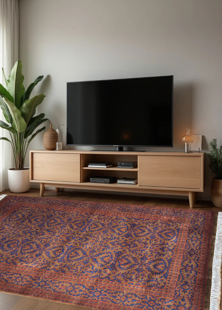 Yamuna - Hand Knotted Wool Rug in Rust Brown/Royal Blue