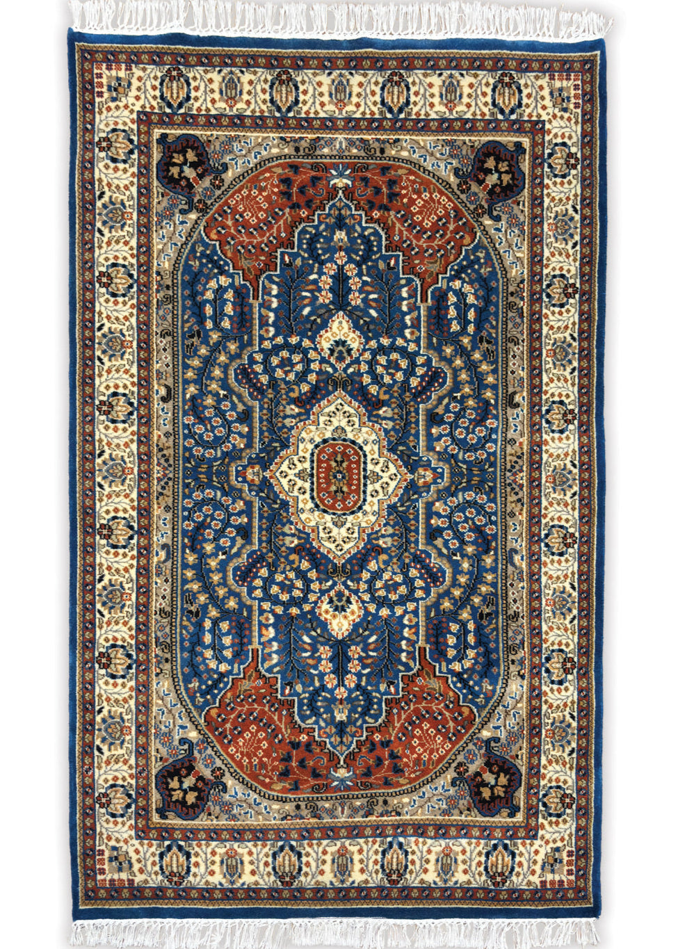 Karun - Hand Knotted Wool Rug in Cobalt Blue/Ivory