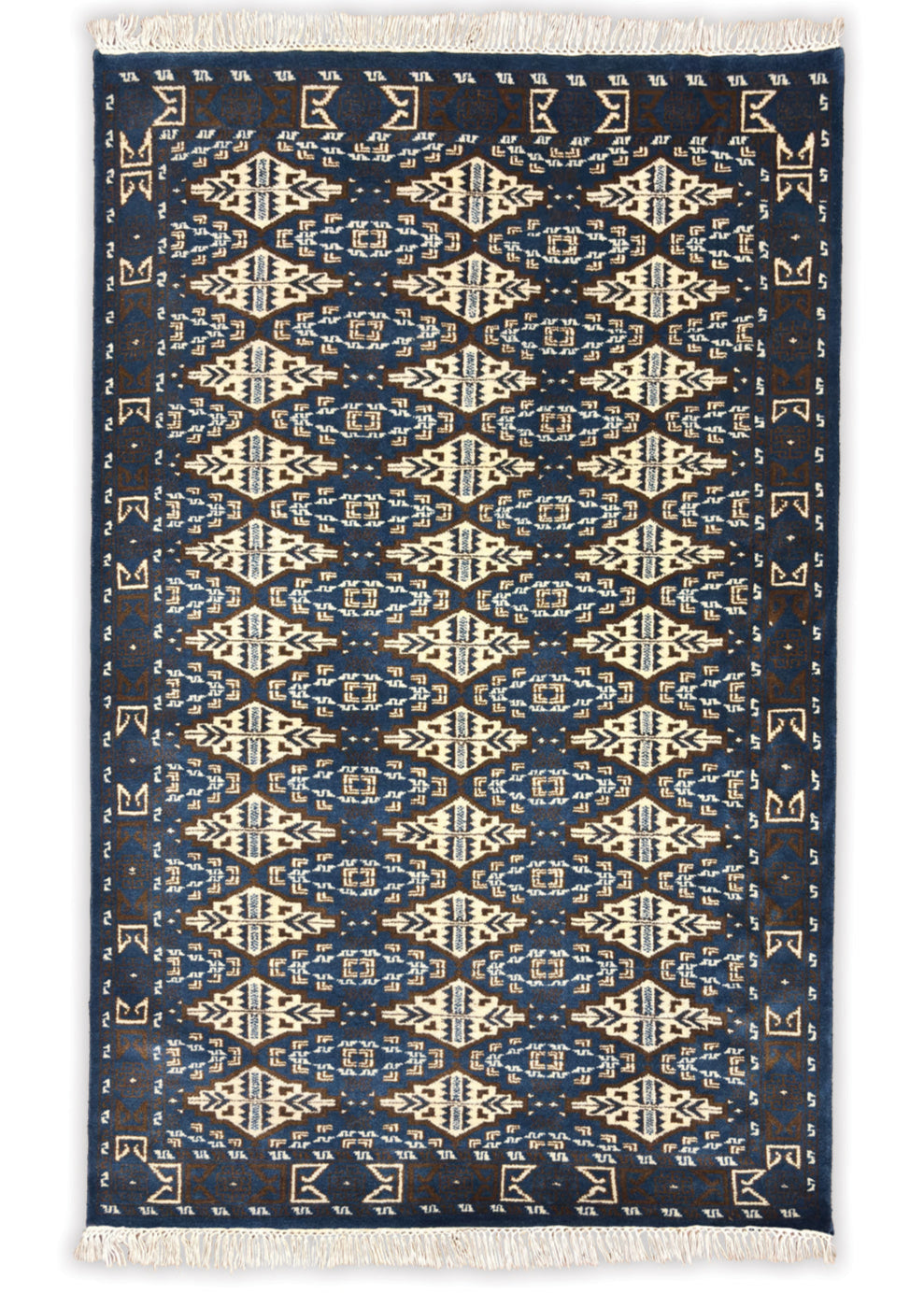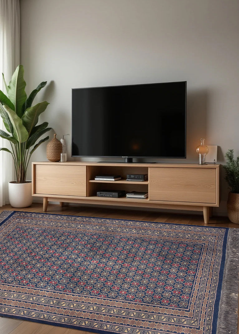 Kalyan - Hand Knotted Wool Rug in Navy Blue/Brown