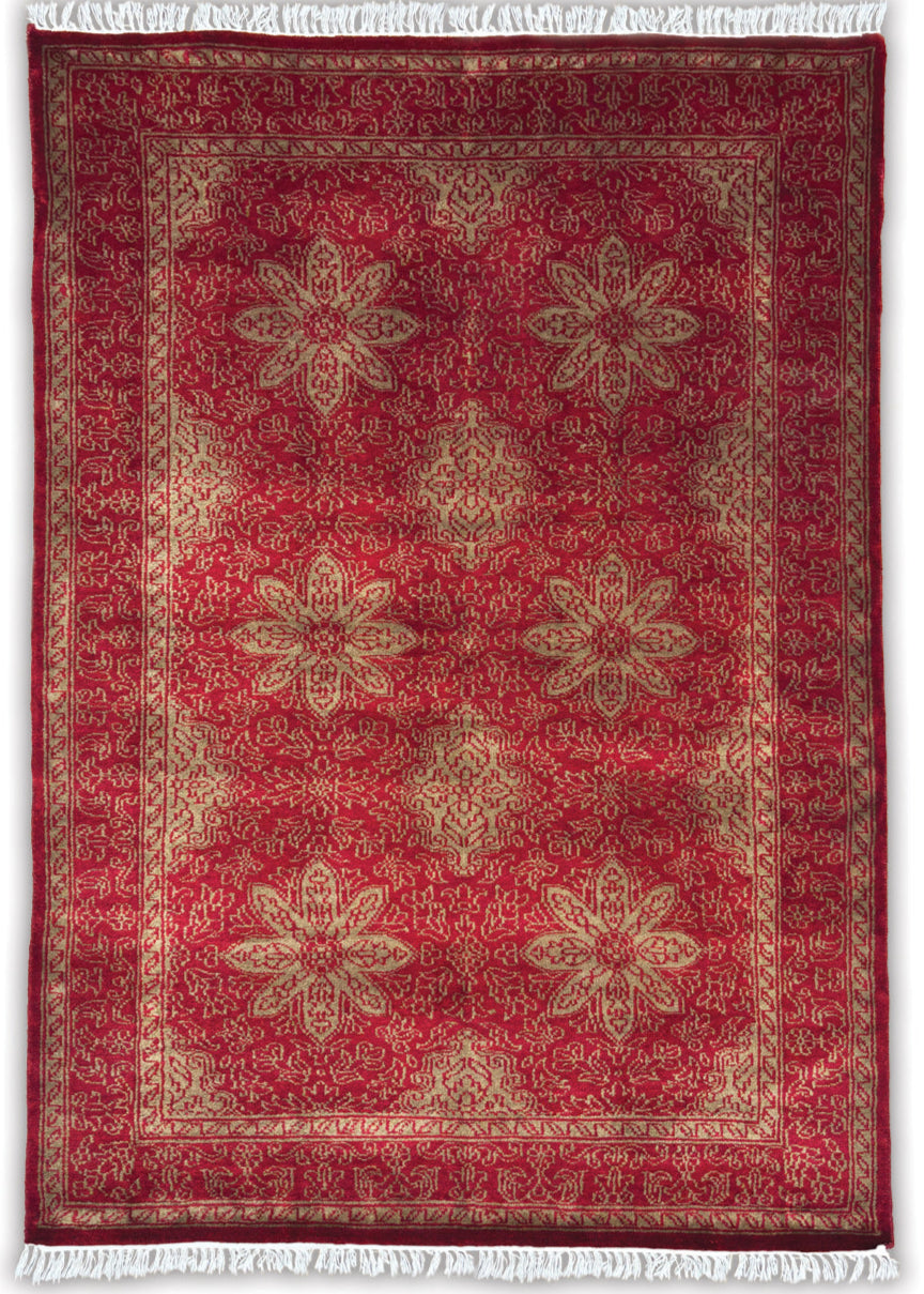 Darbaar - Hand Knotted Wool Rug In Crimson Red/Cream