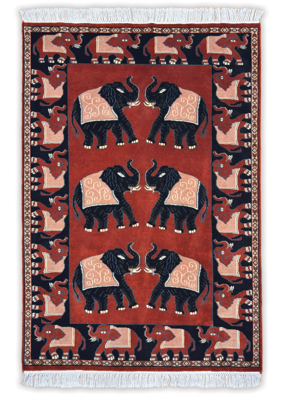 Gajendra - Hand Knotted Wool Rug in Rust/Midnight Blue
