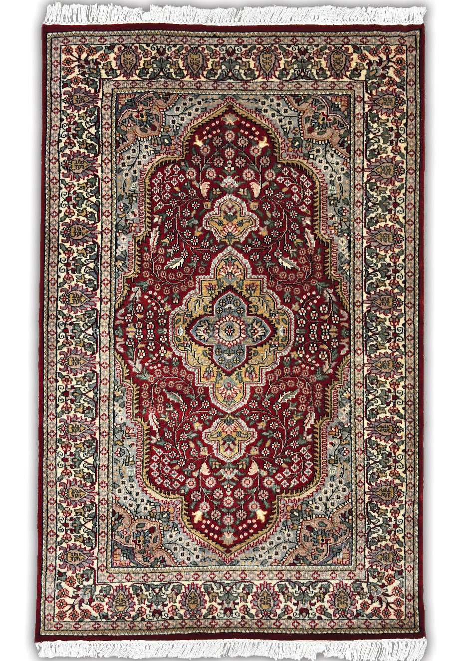 Rumana Safar - Hand Knotted Silk Rug In Crimson Red/Cream