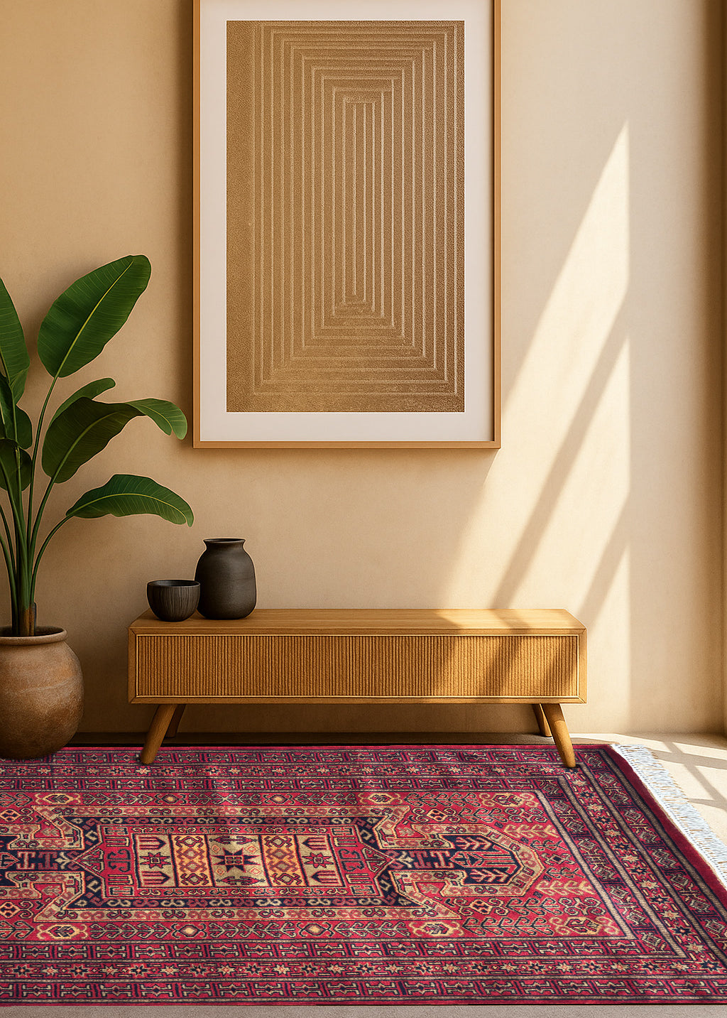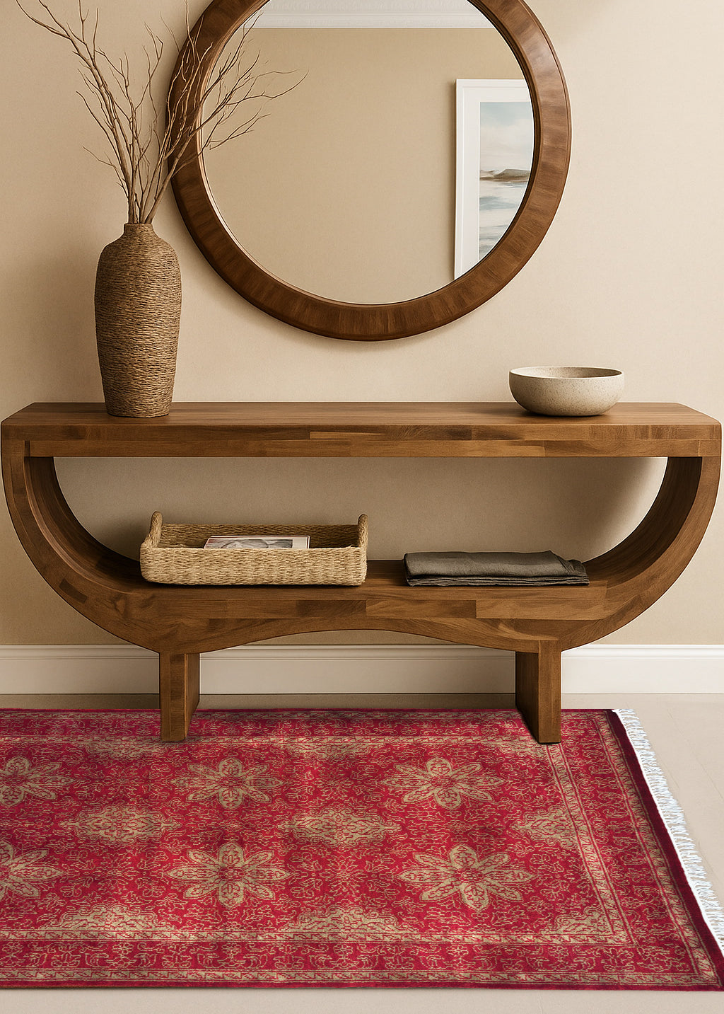 Orvash - Hand Knotted Wool Rug in Crimson Red/Burnt Orange