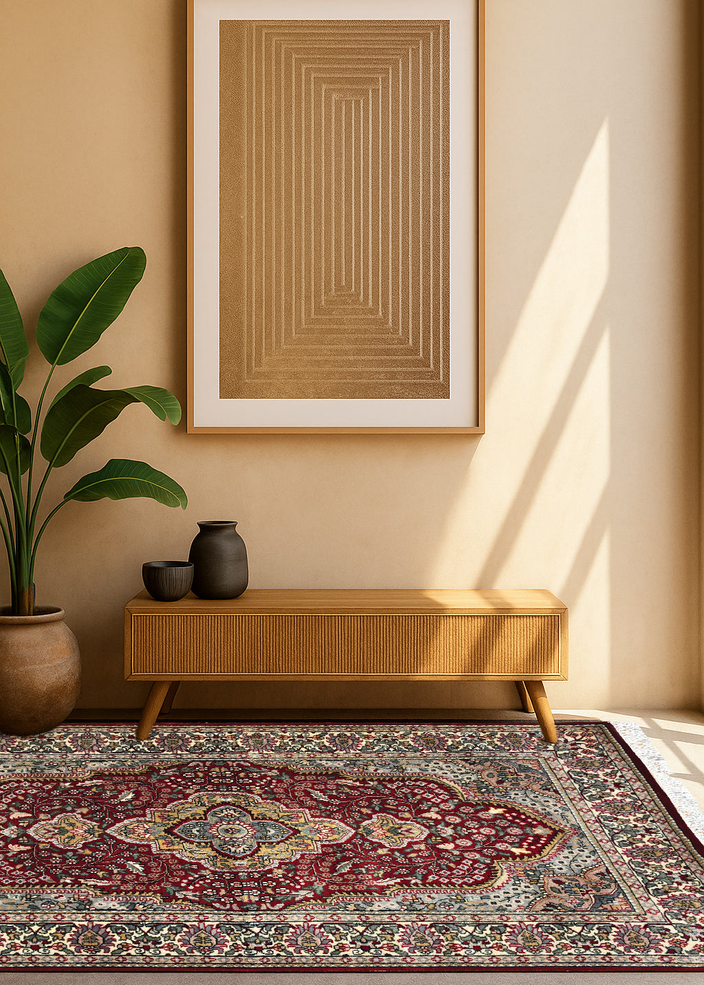 Yamira - Hand Knotted Wool Rug in Crimson Red/Ivory