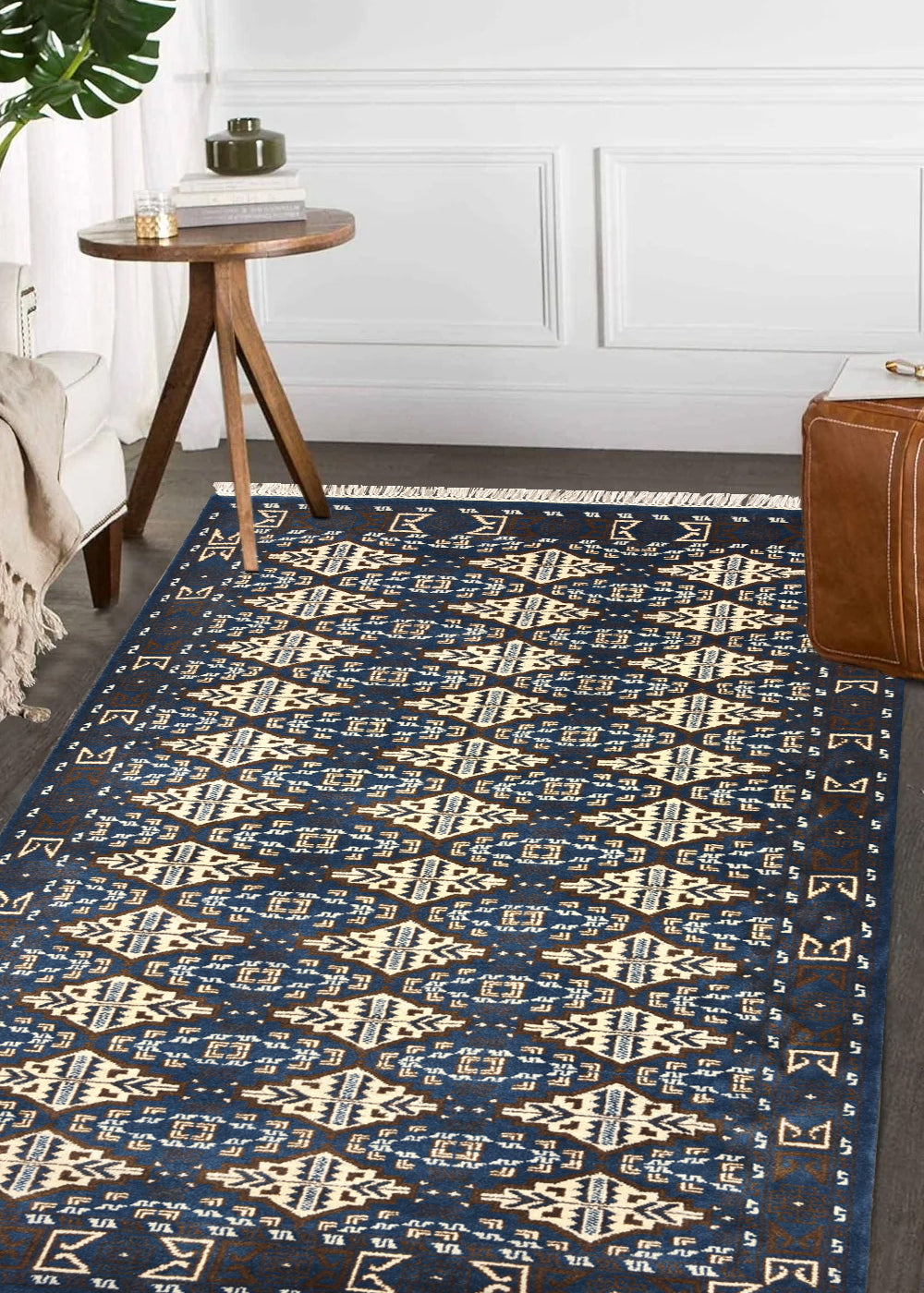 Aneesh - Hand Knotted Wool Rug in Cobalt Blue/Ivory