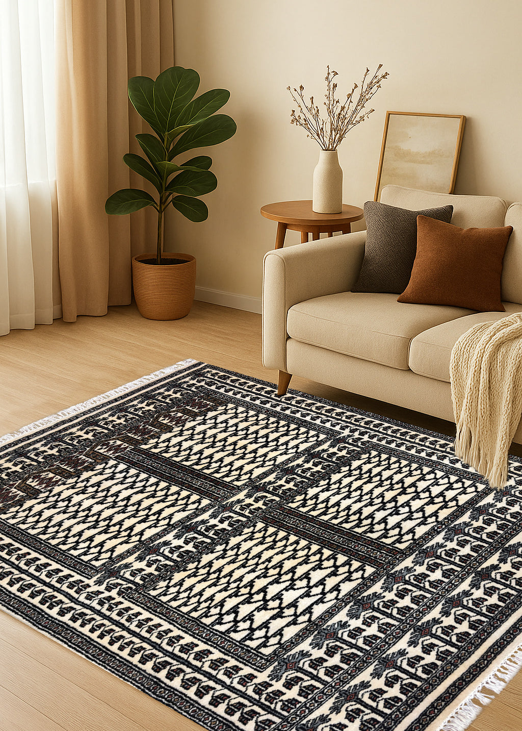Kaarun - Hand Knotted Wool Rug in Ivory/Black