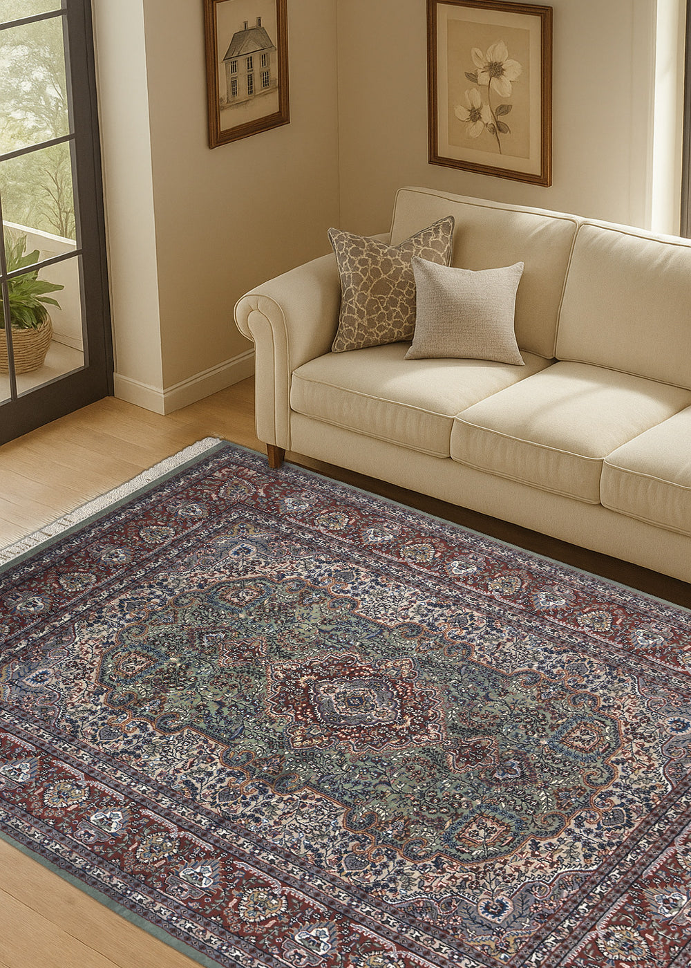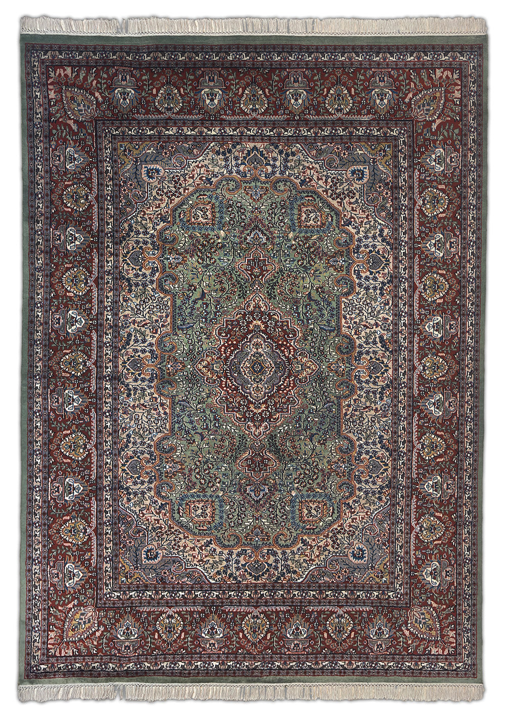 Samreen – Hand Knotted Wool Rug in Sage Green/Brown