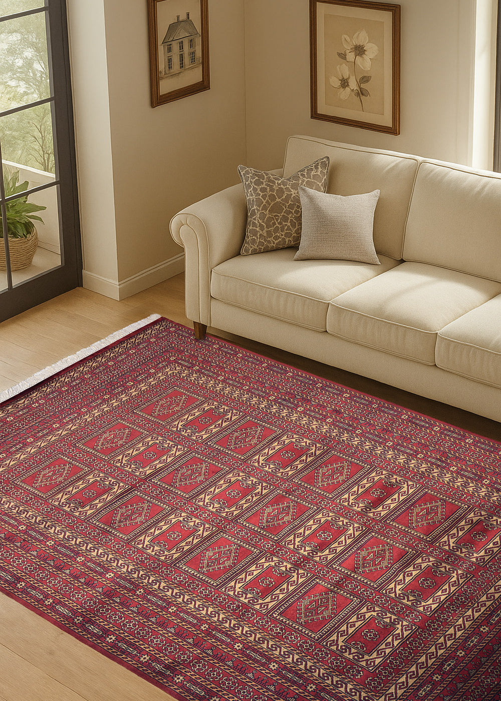 Aanya Bagh – Hand Woven Wool Rug in Cream/Brick Red