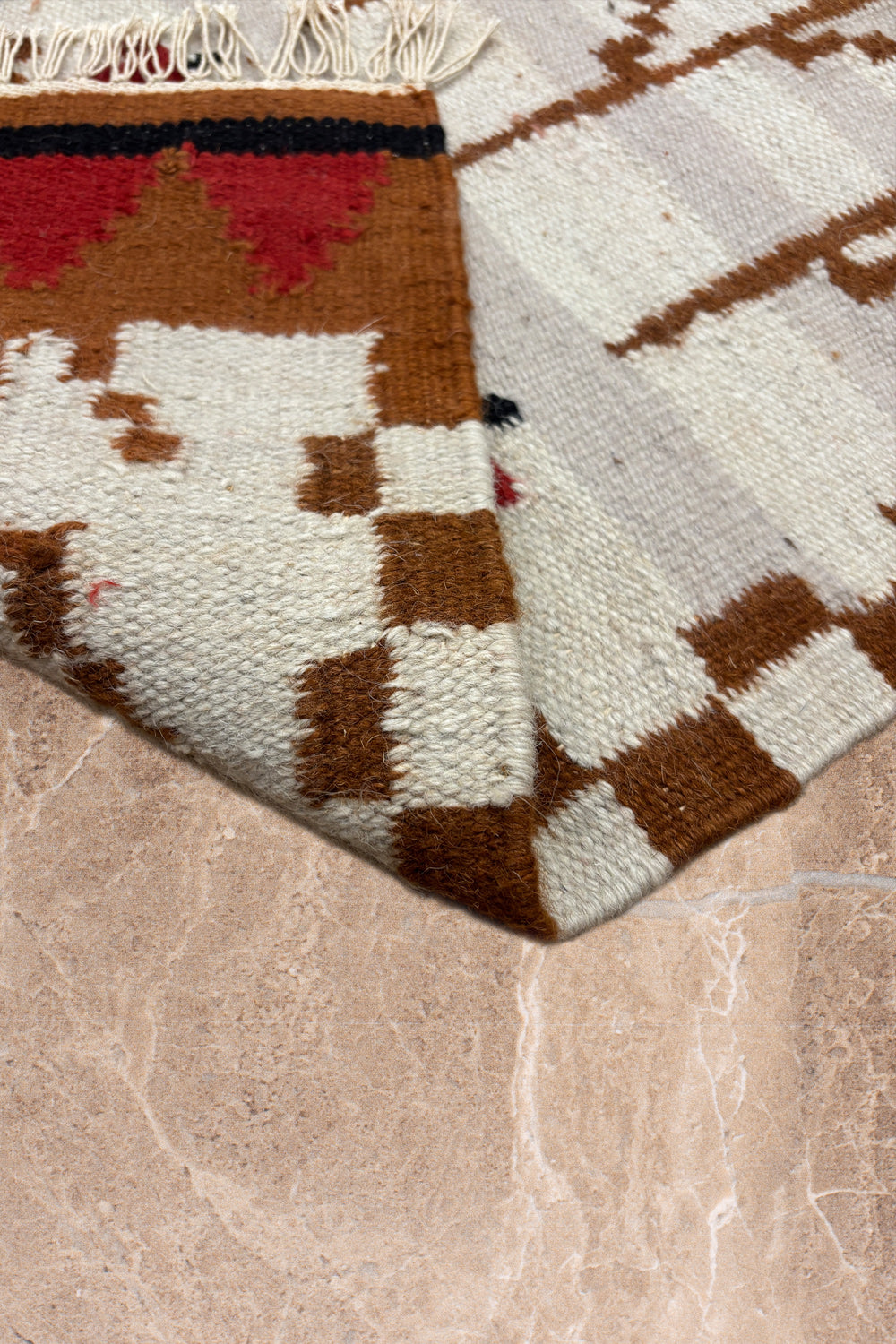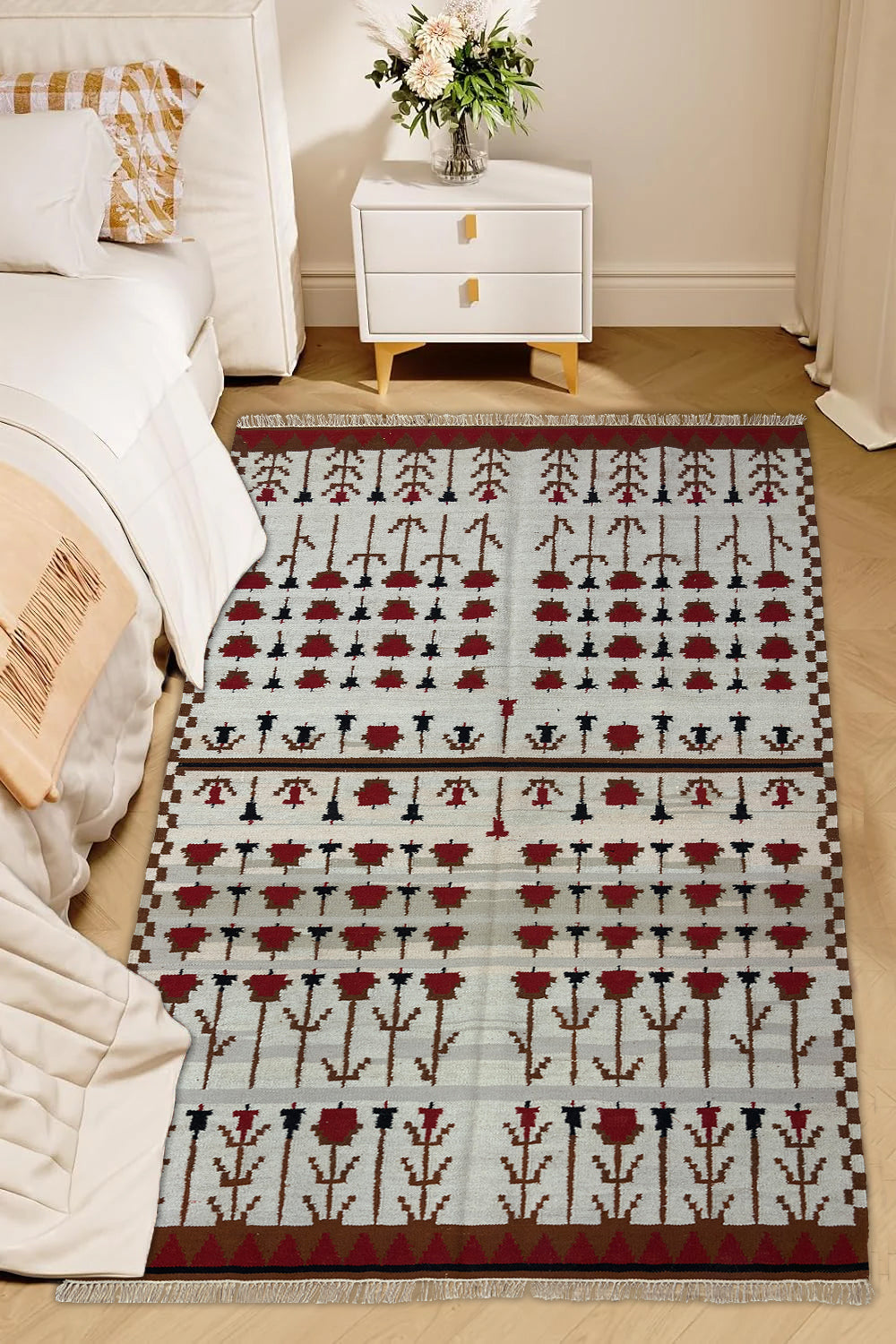 KR00304 Cream/Brick Red Hand Woven Wool Rug