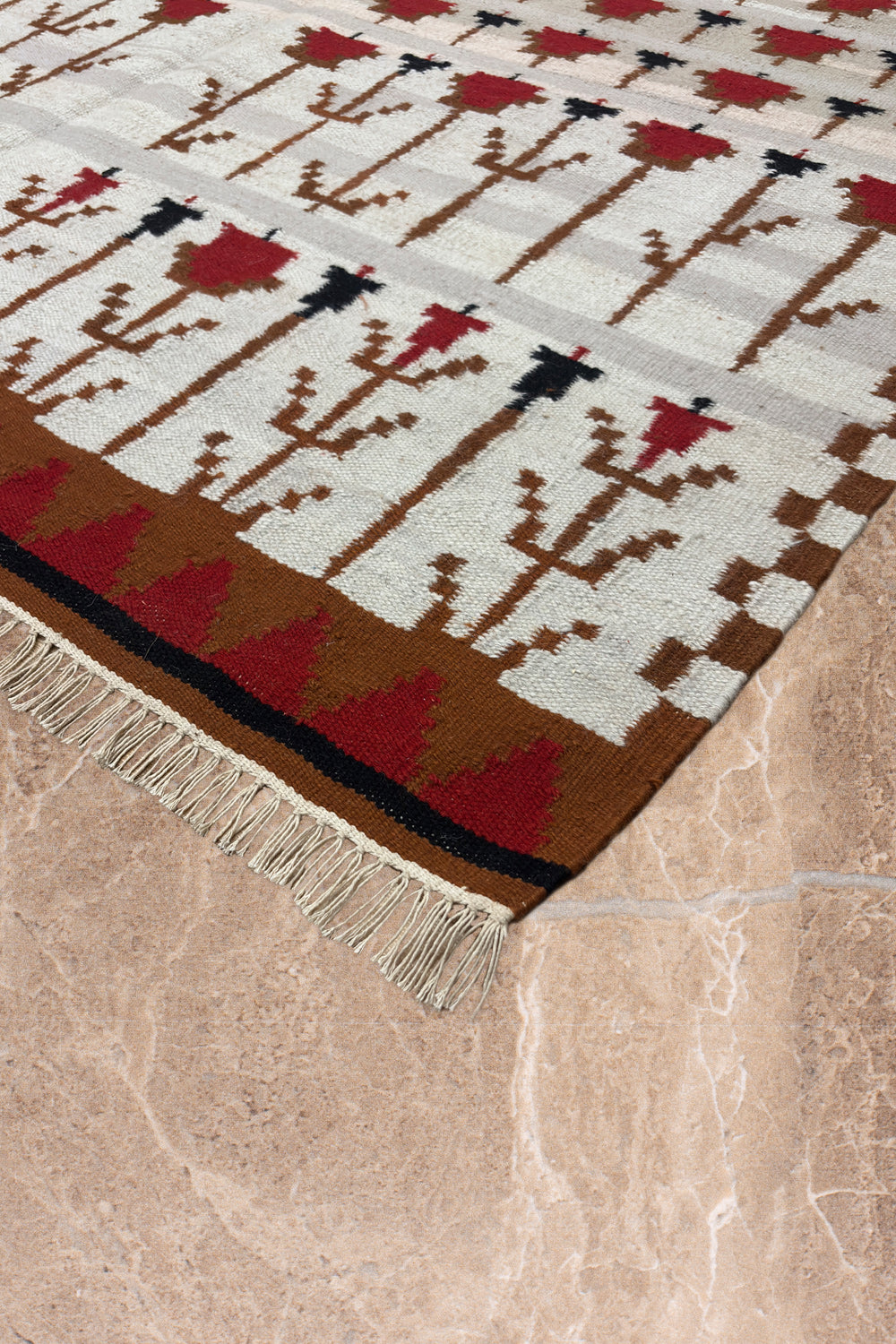 Aanya Bagh – Hand Woven Wool Rug in Cream/Brick Red