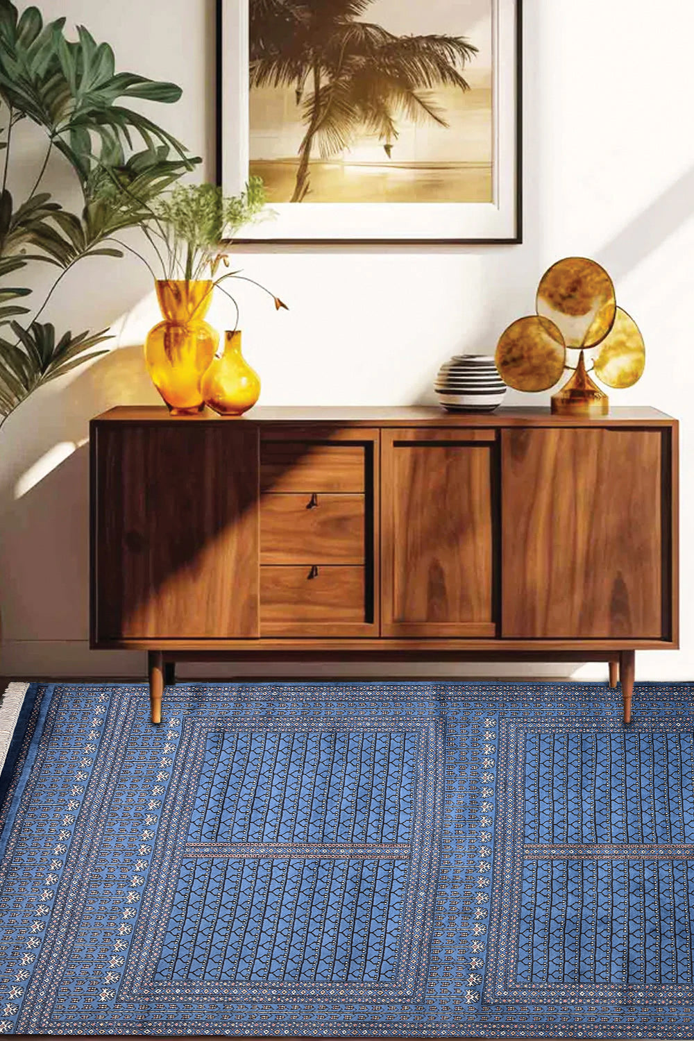 Cool and composed, Aariz lends sophistication to contemporary and traditional interiors alike. The deep blue anchors a space with calm strength, while the ivory details add light and contrast — a study in balance and refinement that endures beyond trends.