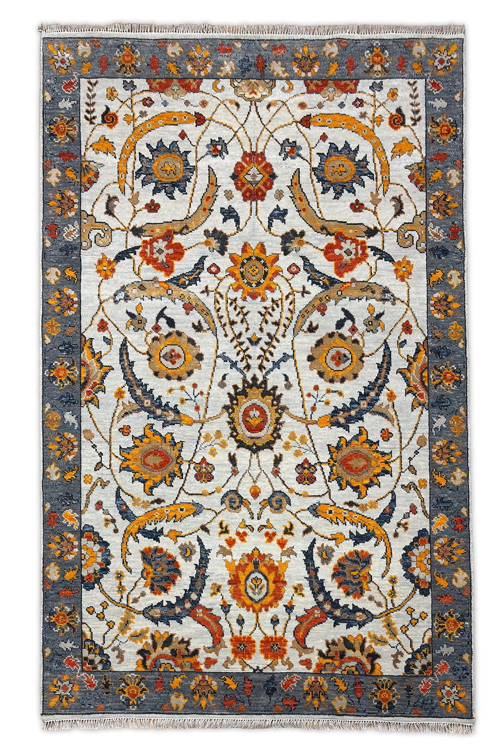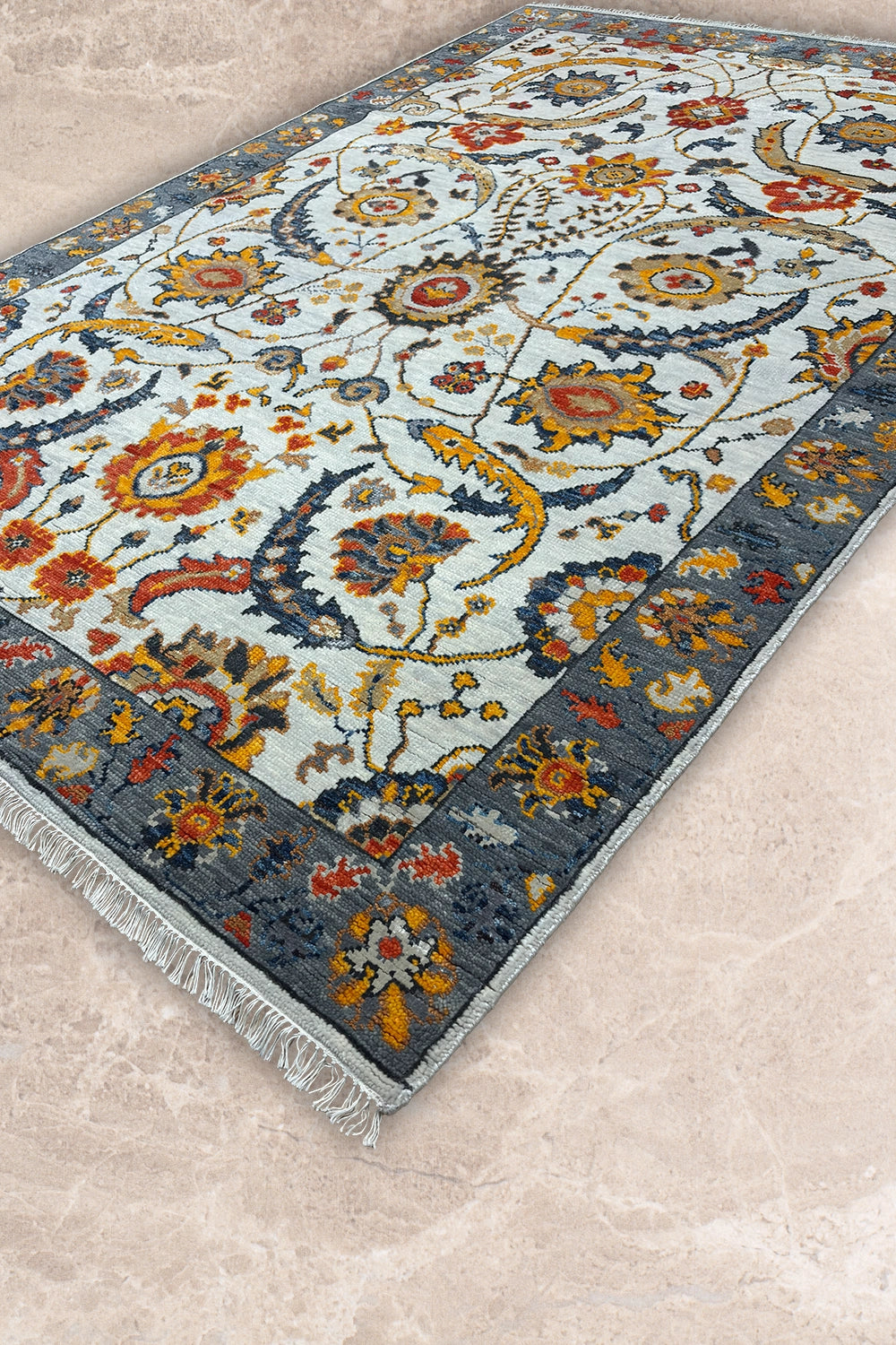 Gulnaar – Hand Knotted Wool Rug in Grey/White
