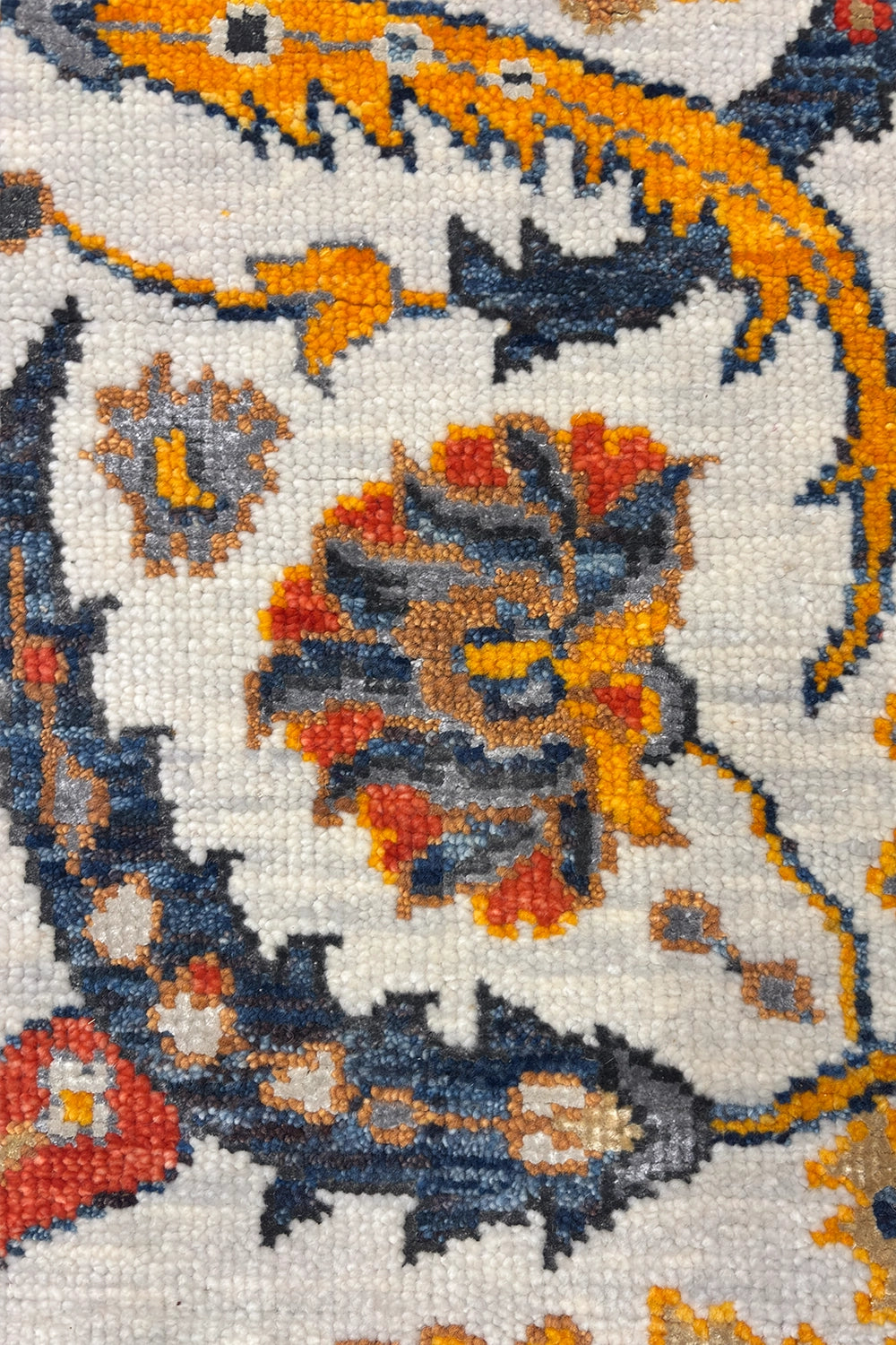 Hand-knotted in wool with a mild soft pile, this rug is designed to bring timeless elegance to living rooms and bedrooms. The refined grey and white palette softens the ornate detailing, allowing the pattern to feel both sophisticated and versatile within classic and transitional interiors.