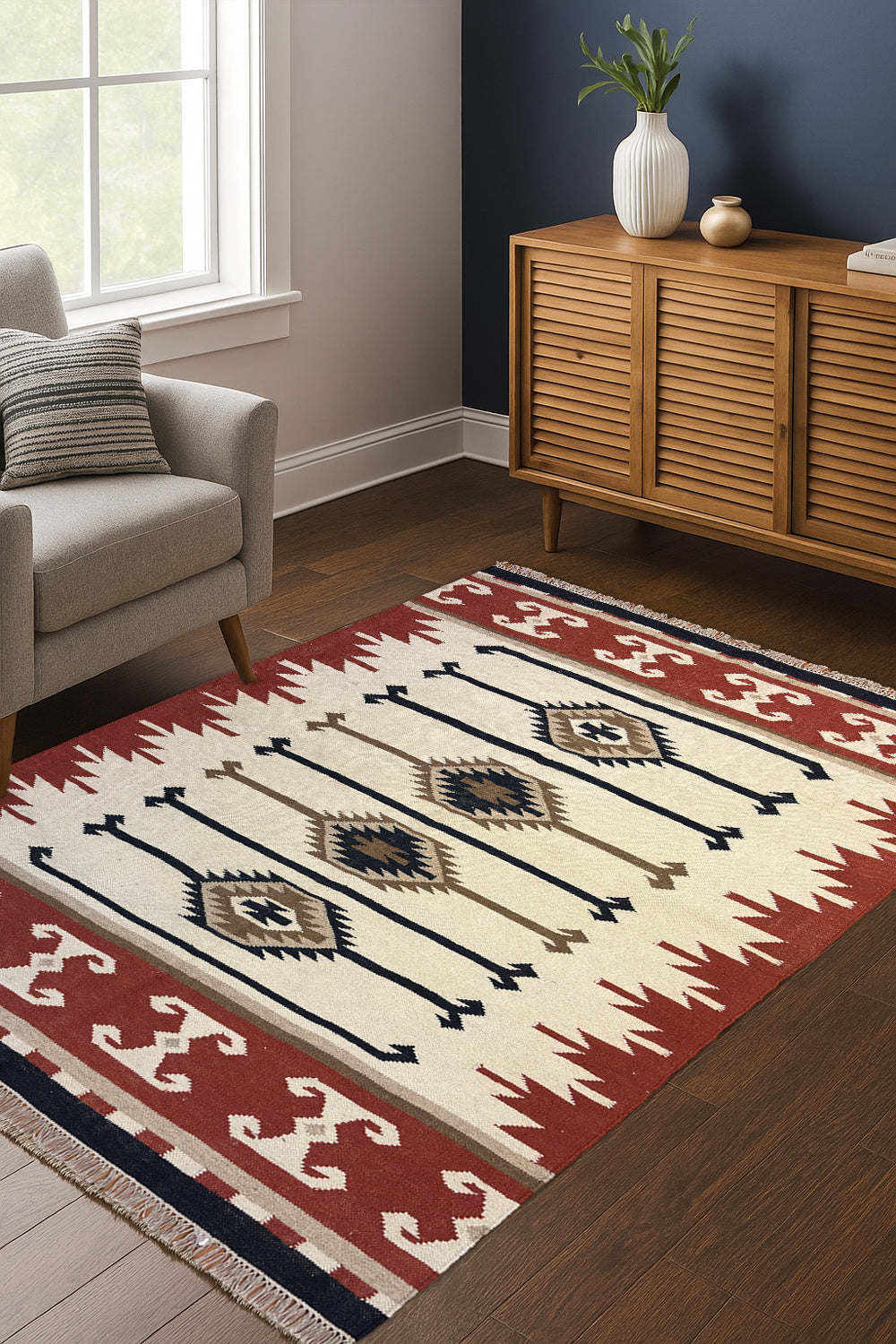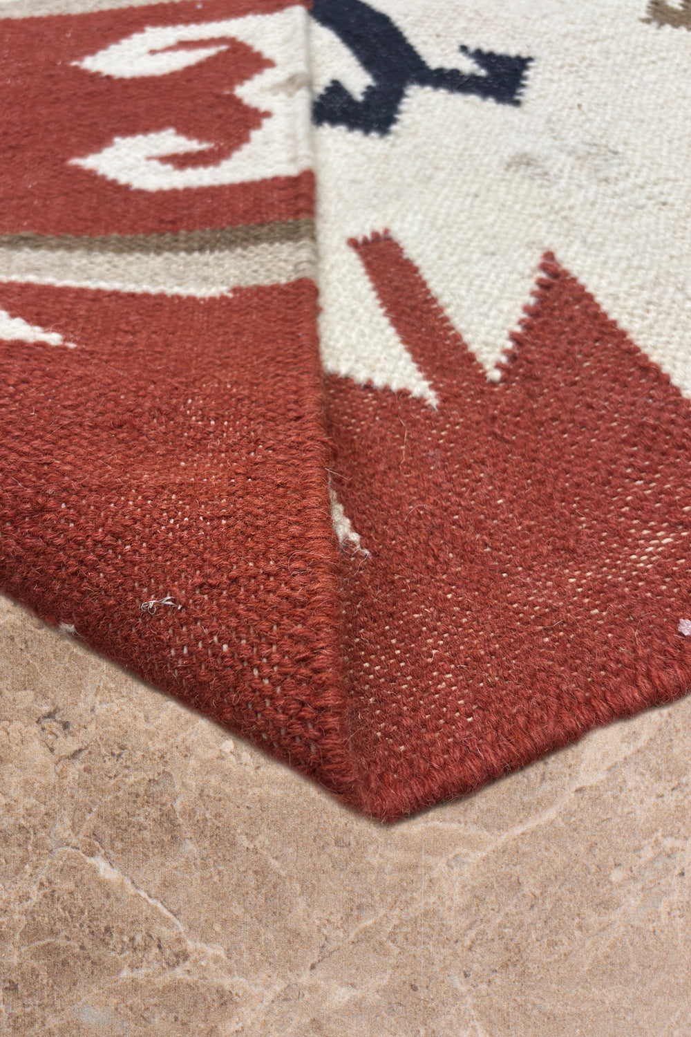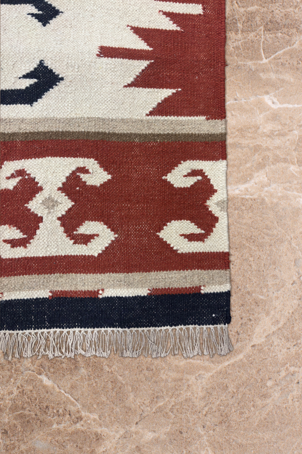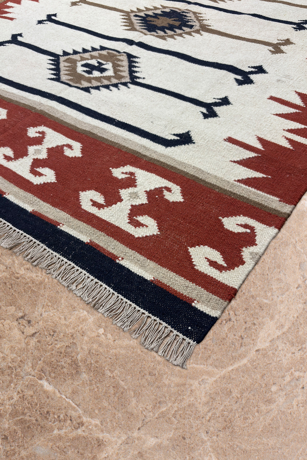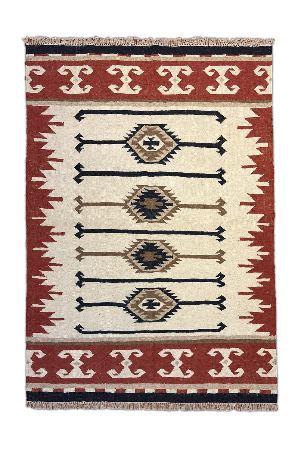 Kiaan Dastaan – Hand Woven Wool Rug in Cream/Terracotta