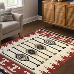 KR00305 Cream/Terracotta Hand Woven Wool Rug