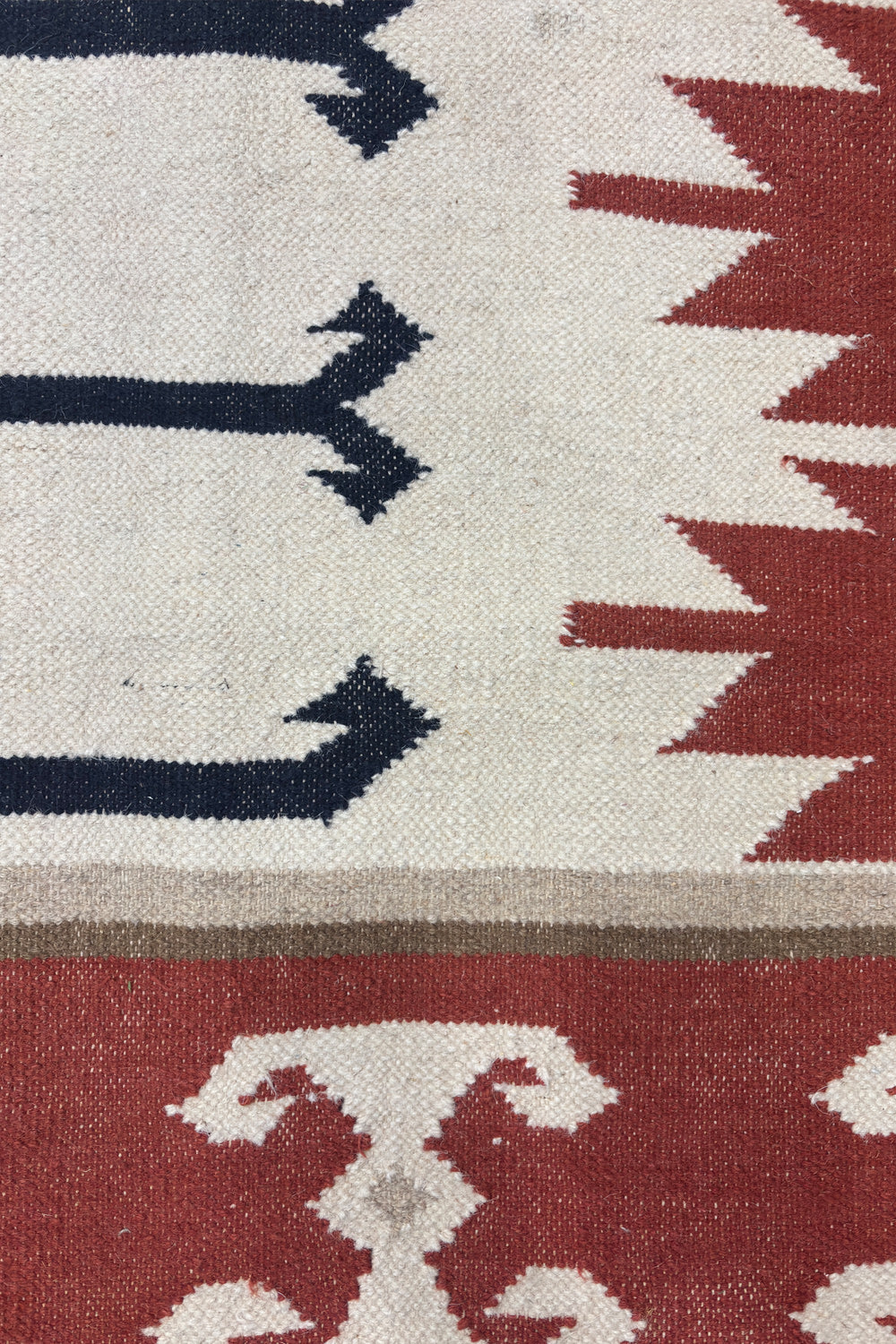 With its clean symmetry and earthy palette, Kiaan Dastan complements contemporary interiors that value craftsmanship and texture. The cream base brightens a space, while the terracotta accents introduce warmth and character — making it a versatile centrepiece for living rooms, studios, or reading corners.