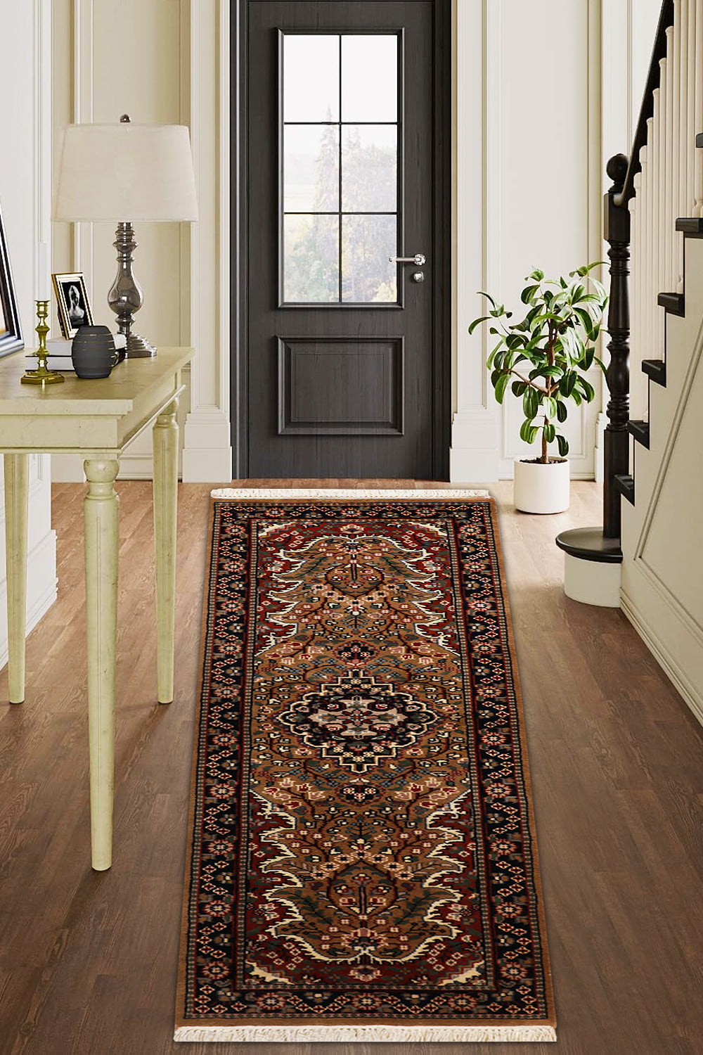 Elevate your home with this runner rug, where every knot weaves a story of historical depth and contemporary appeal. The oriental design, inspired by Persian heritage, complements both traditional and modern interiors with its detailed craftsmanship. Perfect for today’s homes, it combines durability with a cozy aesthetic, creating a welcoming yet stylish pathway. Its earthy tones enhance any space, infusing it with a sense of cultural richness and understated refinement. Discover a rug that bridges ancient traditions with modern living spaces.