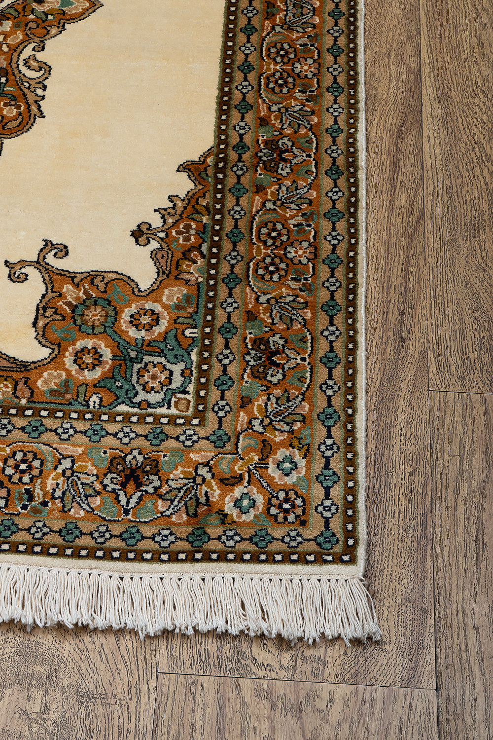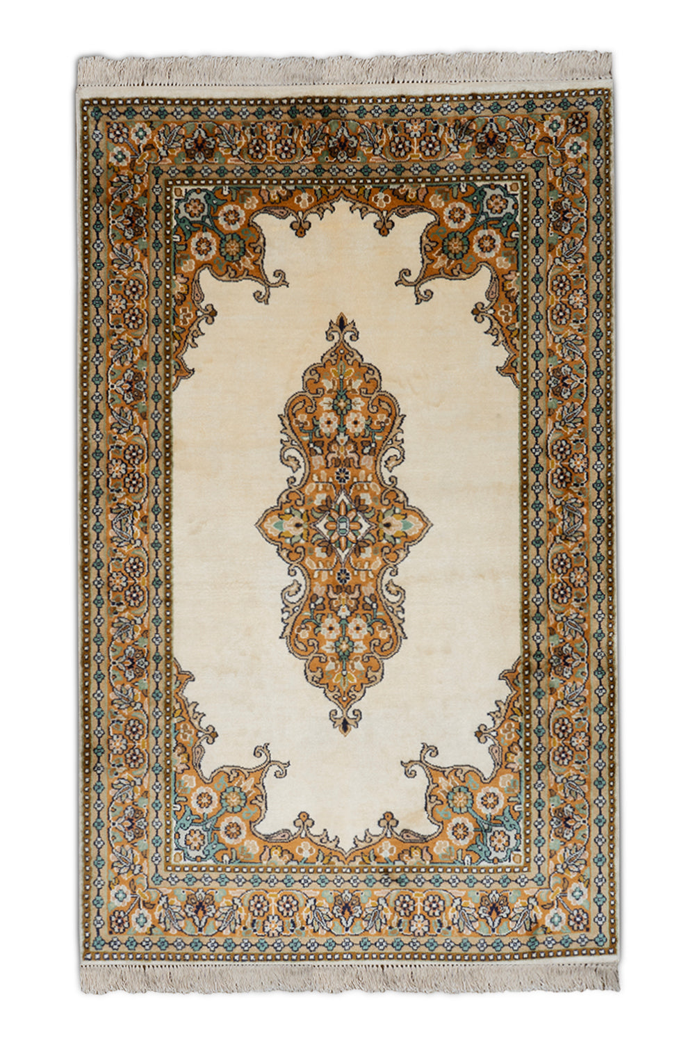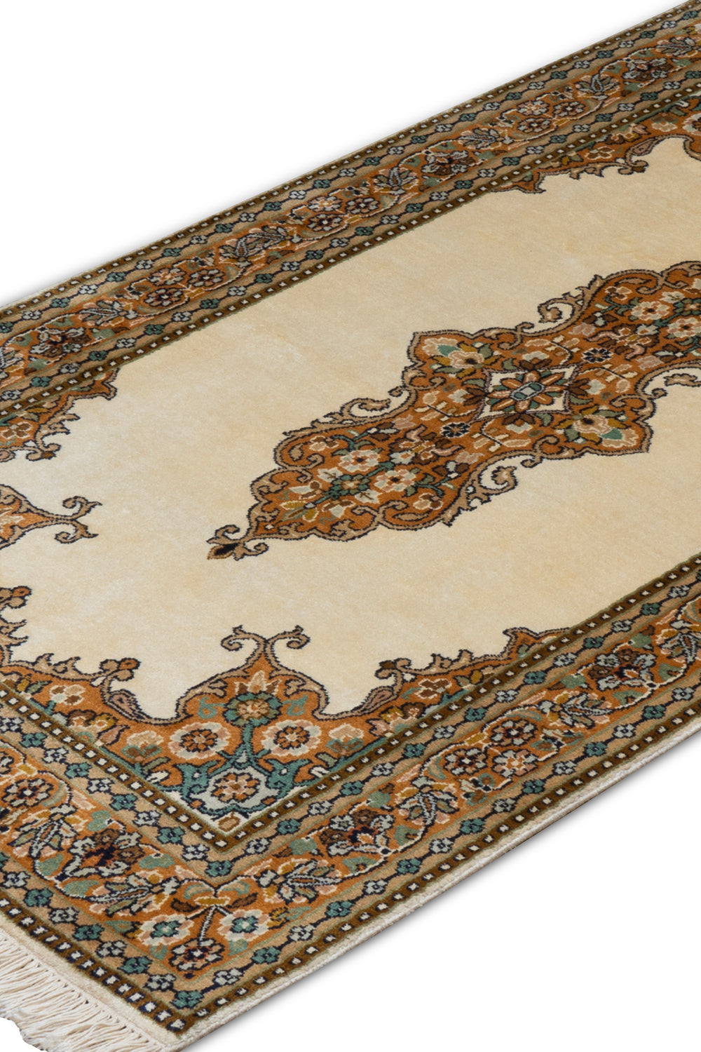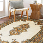 KR00122 Cream/Orange Hand Knotted Rug
