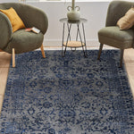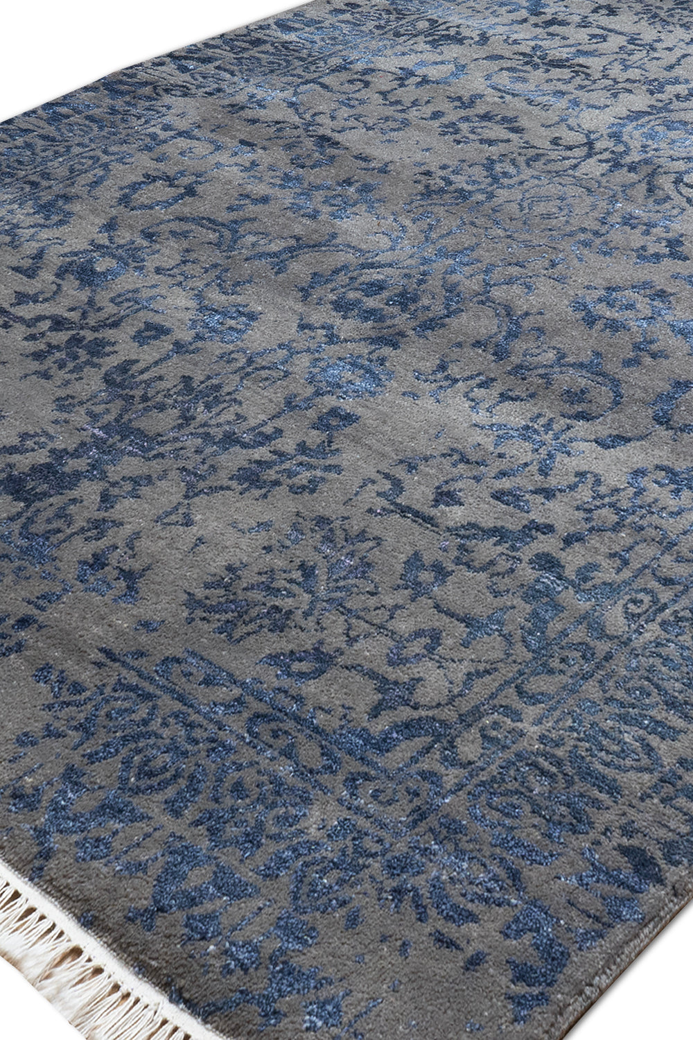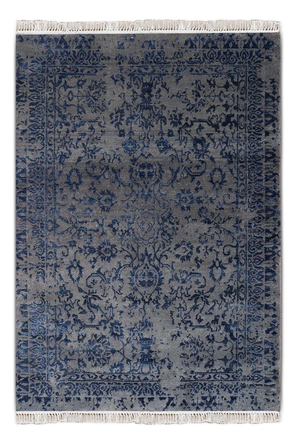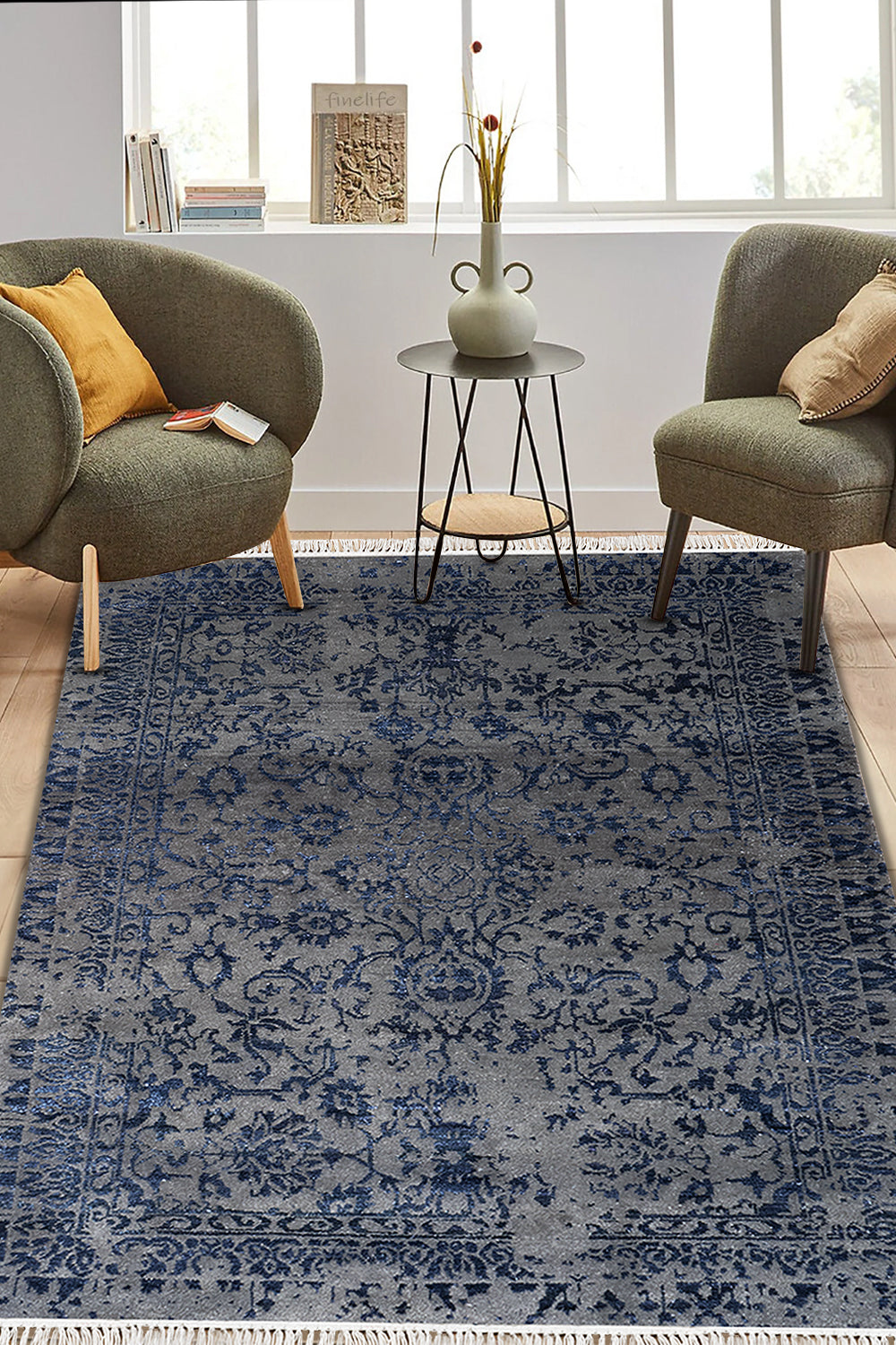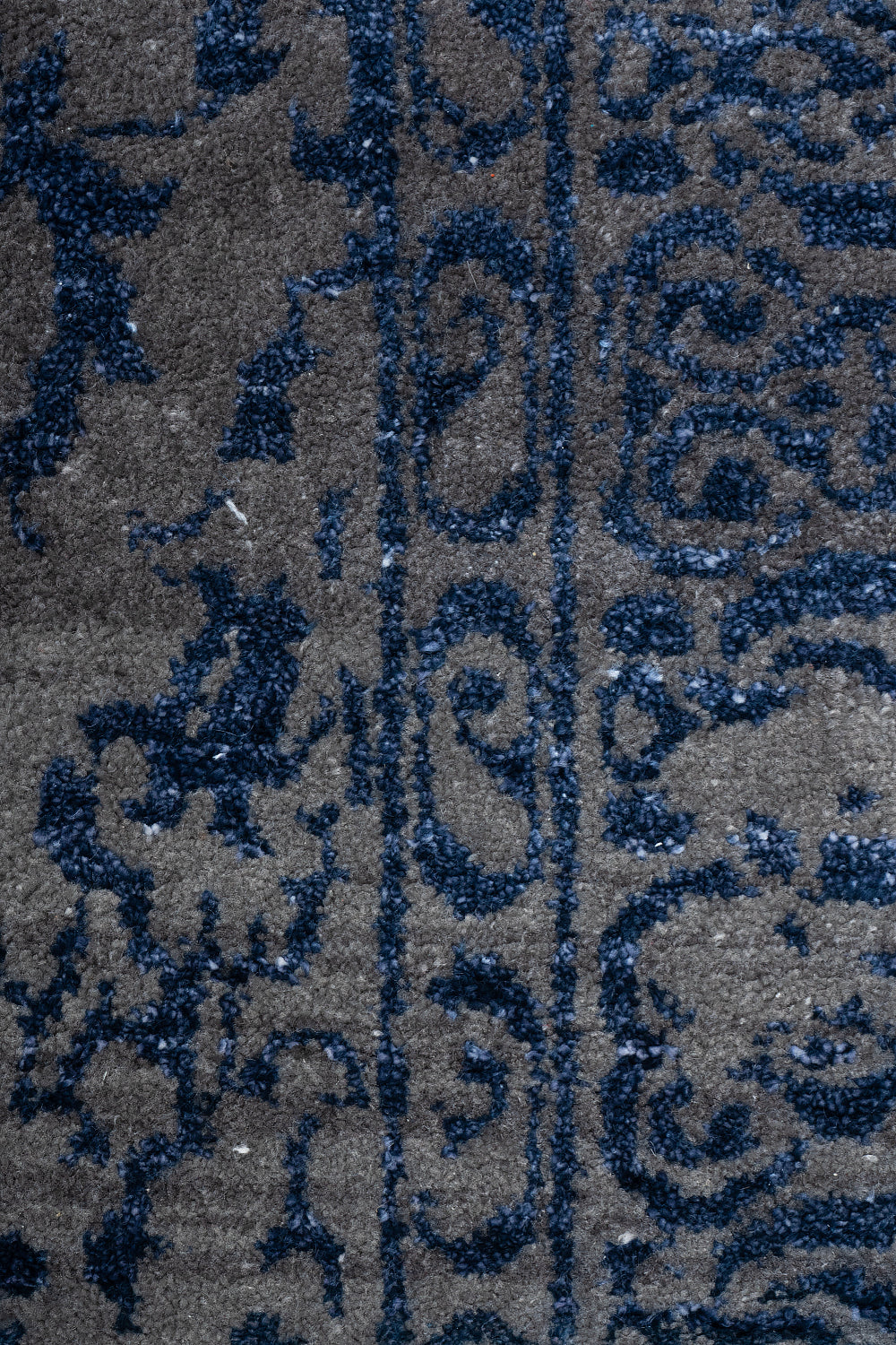 KR00108 Slate Gray/Navy Blue Hand Knotted Rug