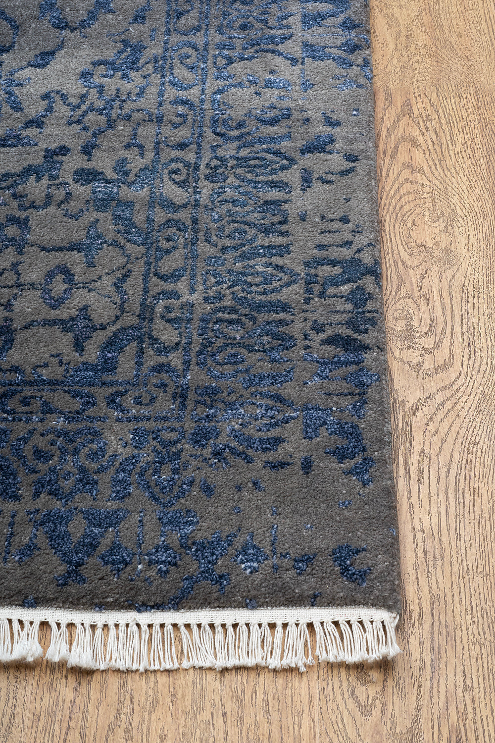 Nargis - Hand Knotted Wool Rug In Slate Gray/Navy Blue