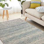 Neer Kavya – Hand Woven Wool Rug in Sky Blue/Cream