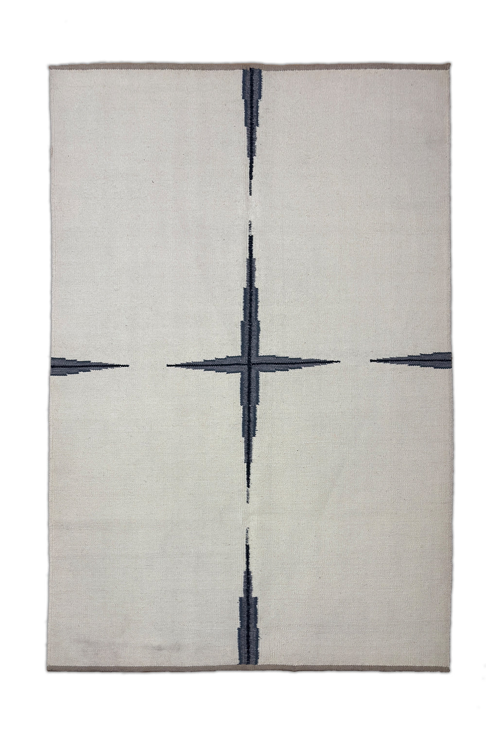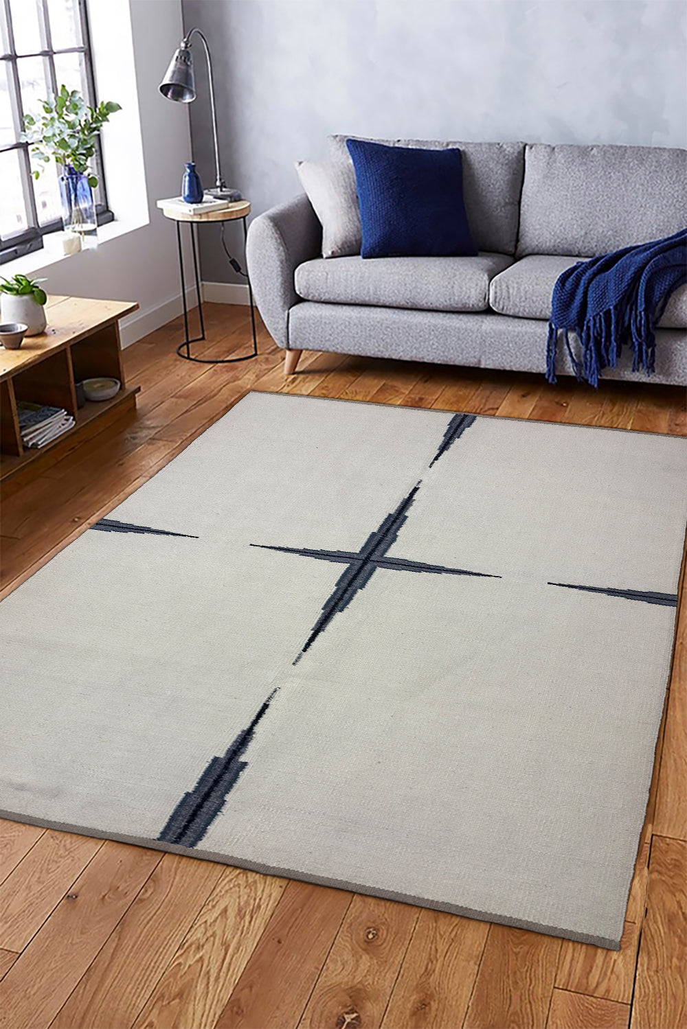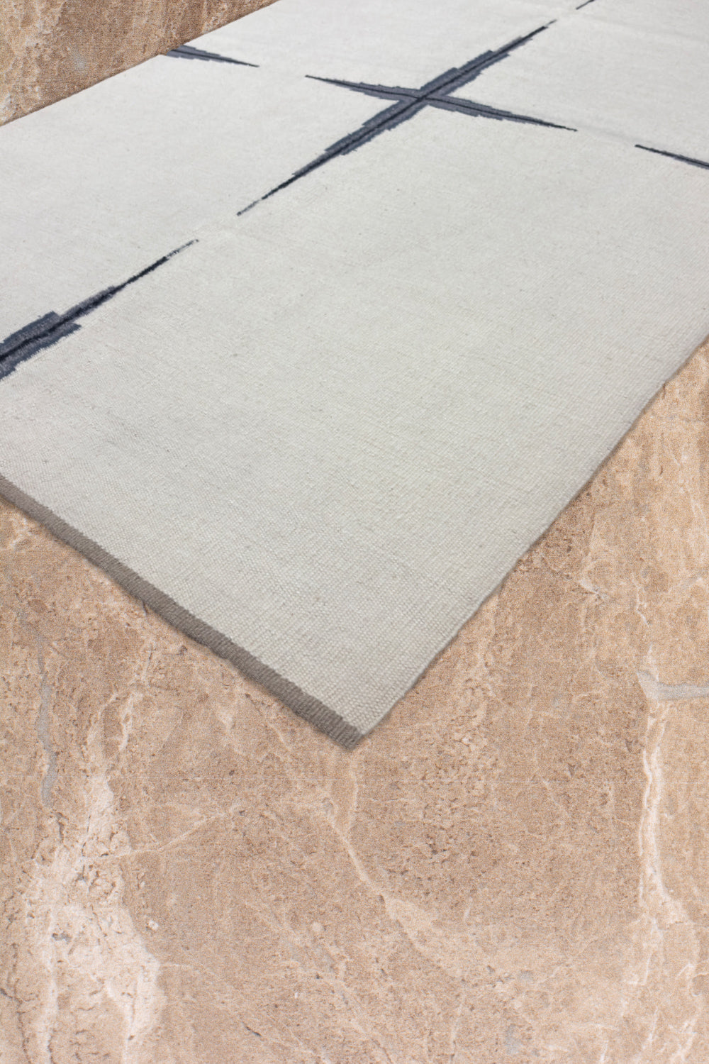 Neer Saaz – Hand Woven Wool Rug in Ivory/Charcoal Grey