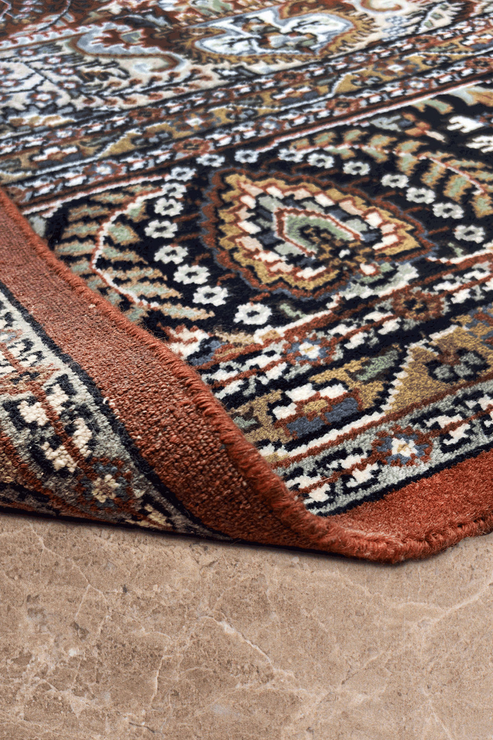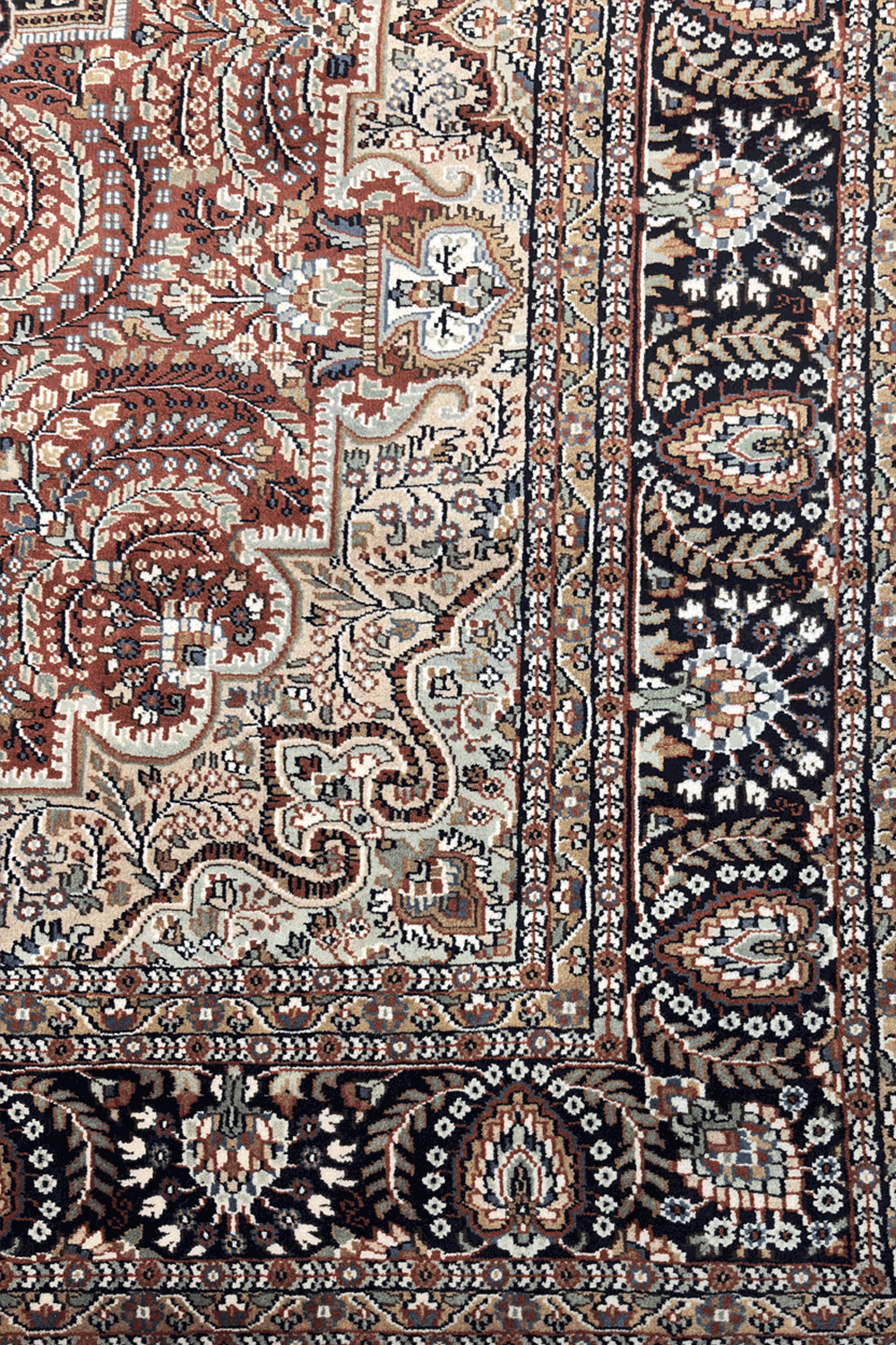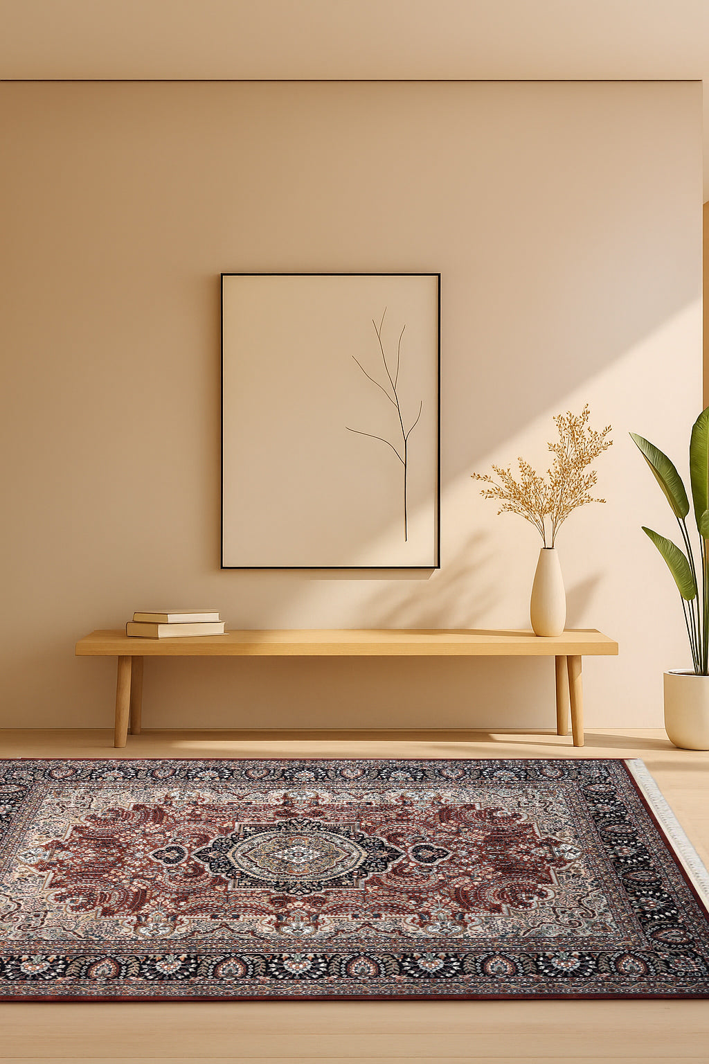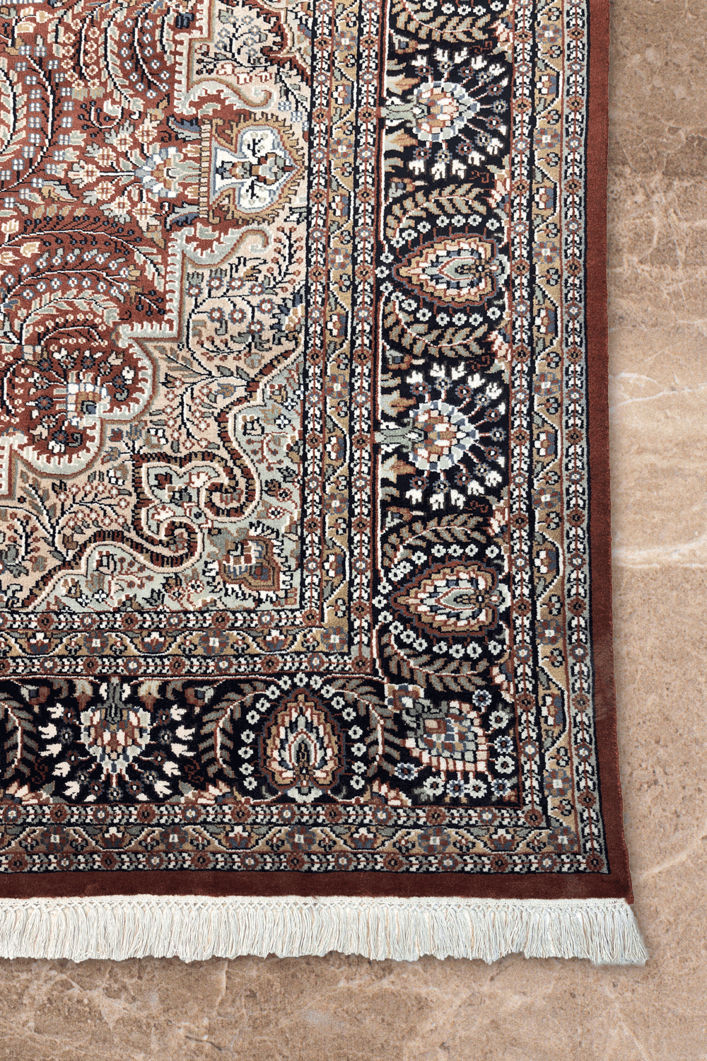 The Nivara rug captures the warmth of heritage weaving, where earthy rust tones meet the purity of ivory in perfect contrast. The central medallion radiates outwards, surrounded by layered motifs that embody balance, tradition, and artistry. Each knot is a story in itself, tied by hand with patience and precision, preserving an age-old craft.
