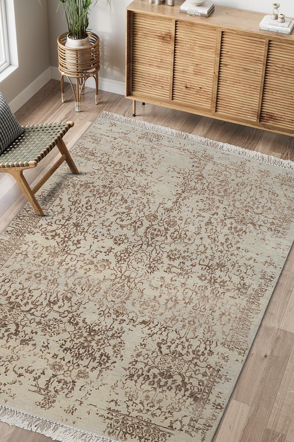 KR00075 Light Grey/Mushroom Brown Hand Knotted Rug