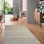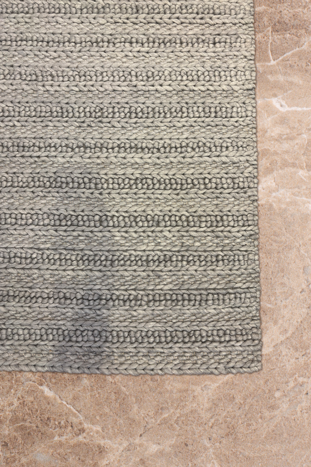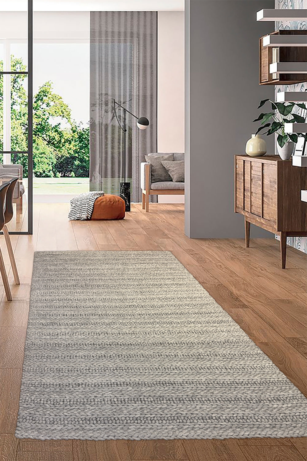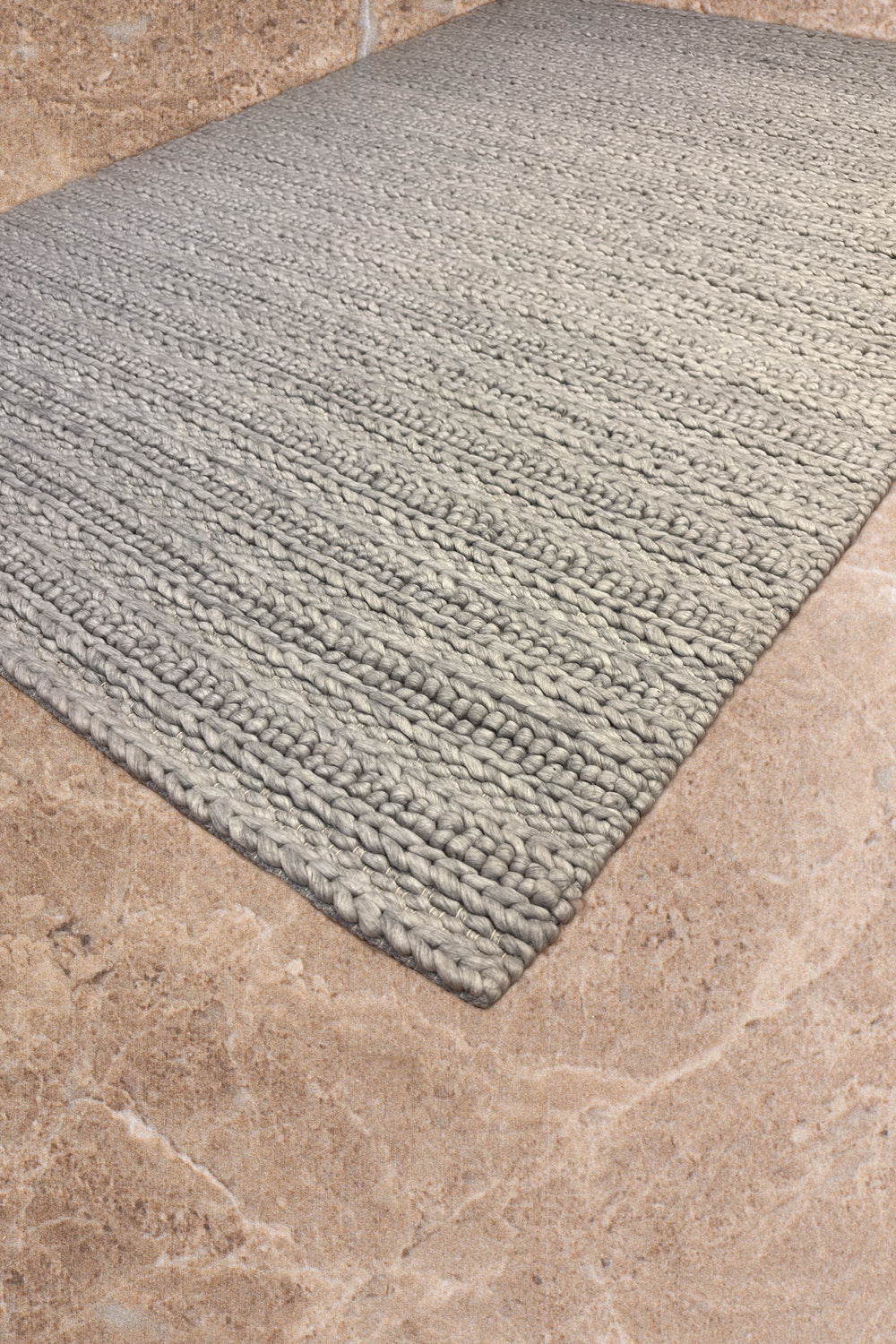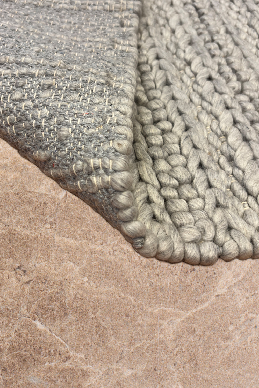 The Reva Weave rug is defined by its depth and texture. Handwoven in wool, its sculpted rows form a rhythmic surface that catches light and shadow, giving subtle movement to its soft grey tone. Every ridge reveals the quiet artistry of the handloom — honest, tactile, and timeless.