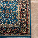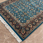 Ideal for living rooms or bedrooms, Samudra brings a refreshing calm. The teal tones breathe life into interiors, while the charcoal border frames the design with depth and refinement. This rug feels at once expansive and intimate, like a quiet shoreline.