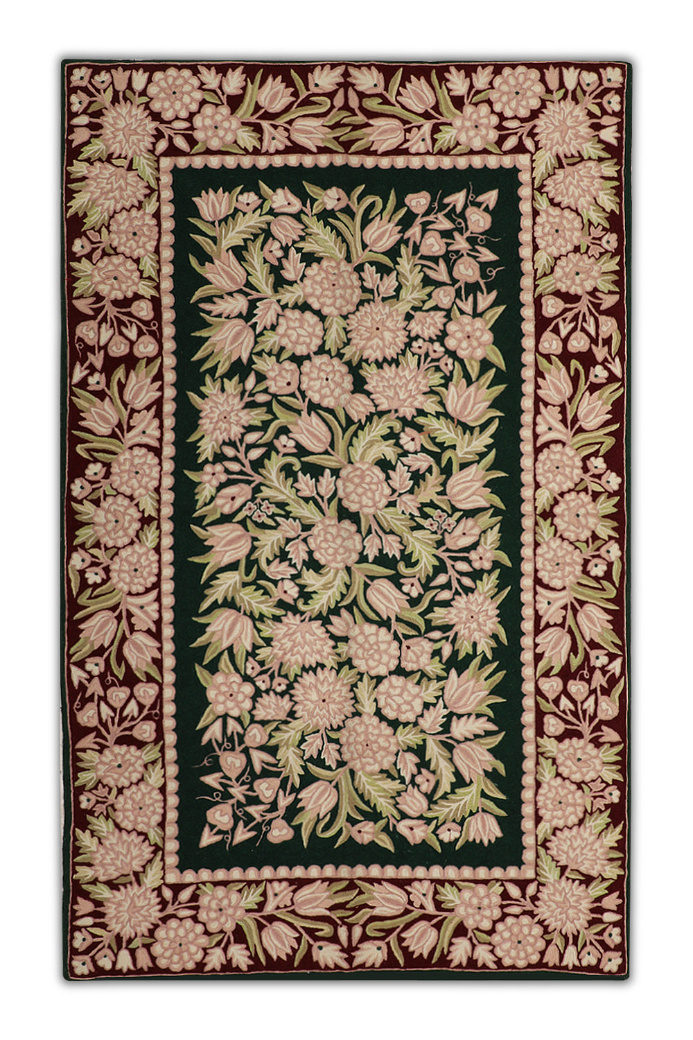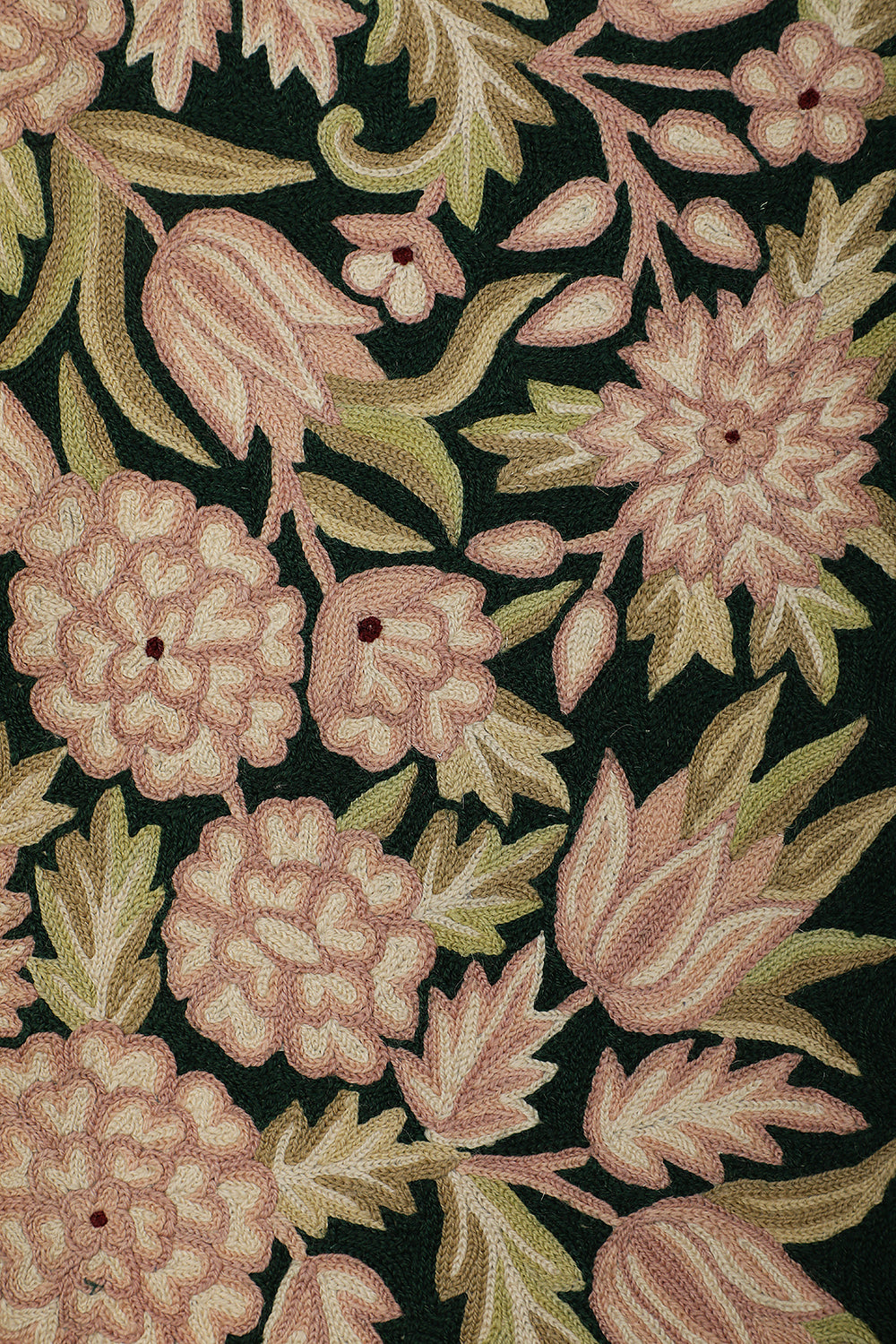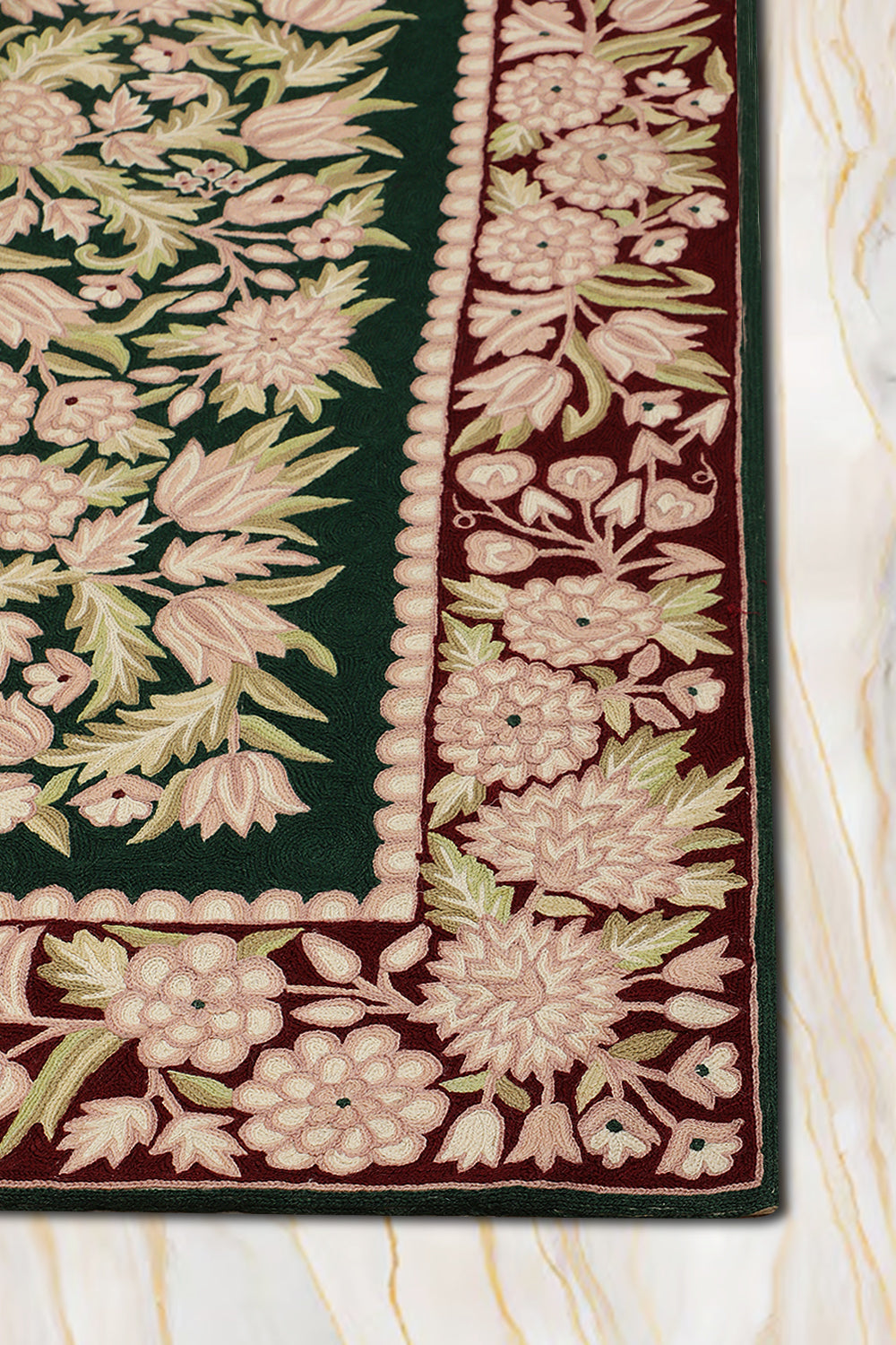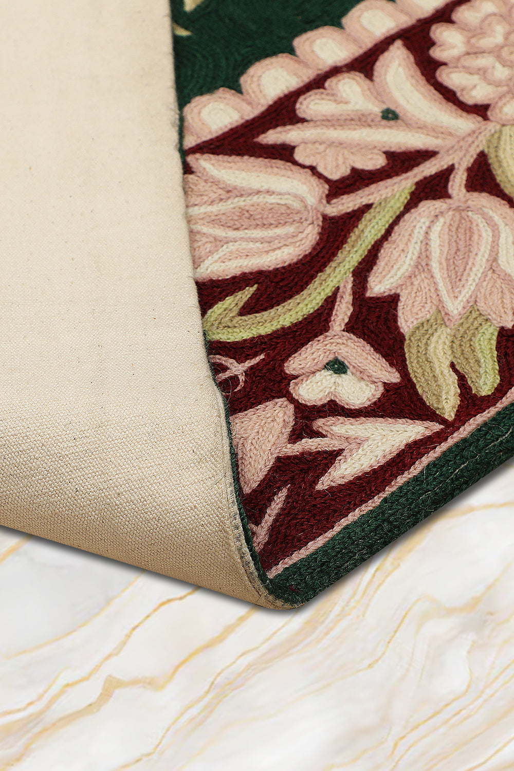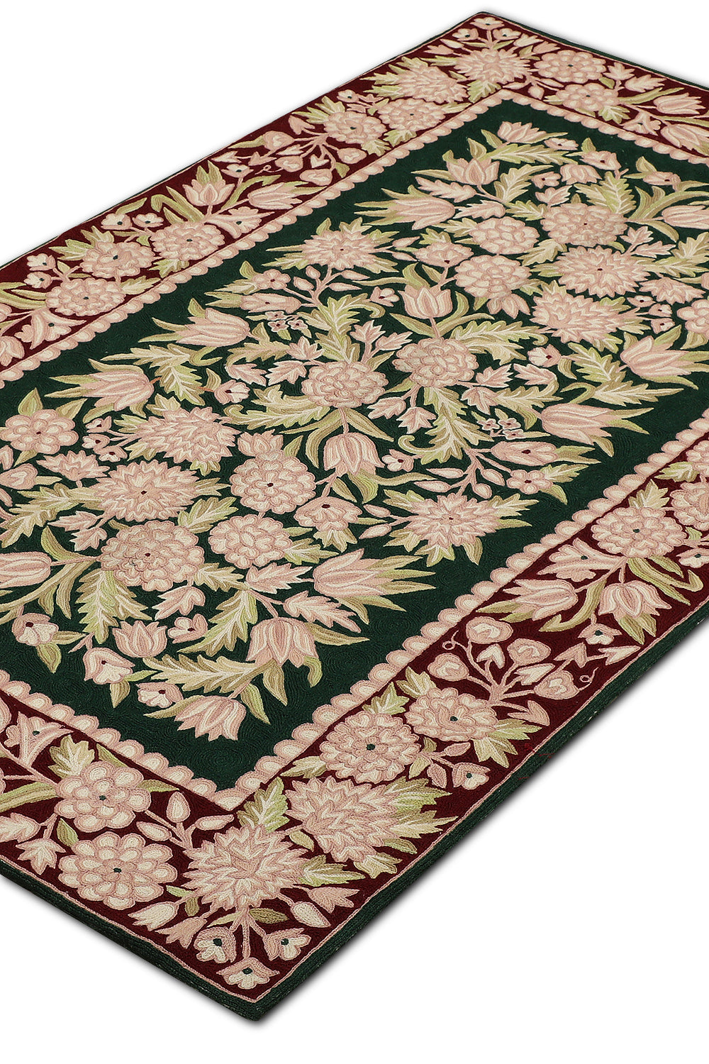 Shayra - Chain Stitch Embroidery Wool Rug In Green/Maroon