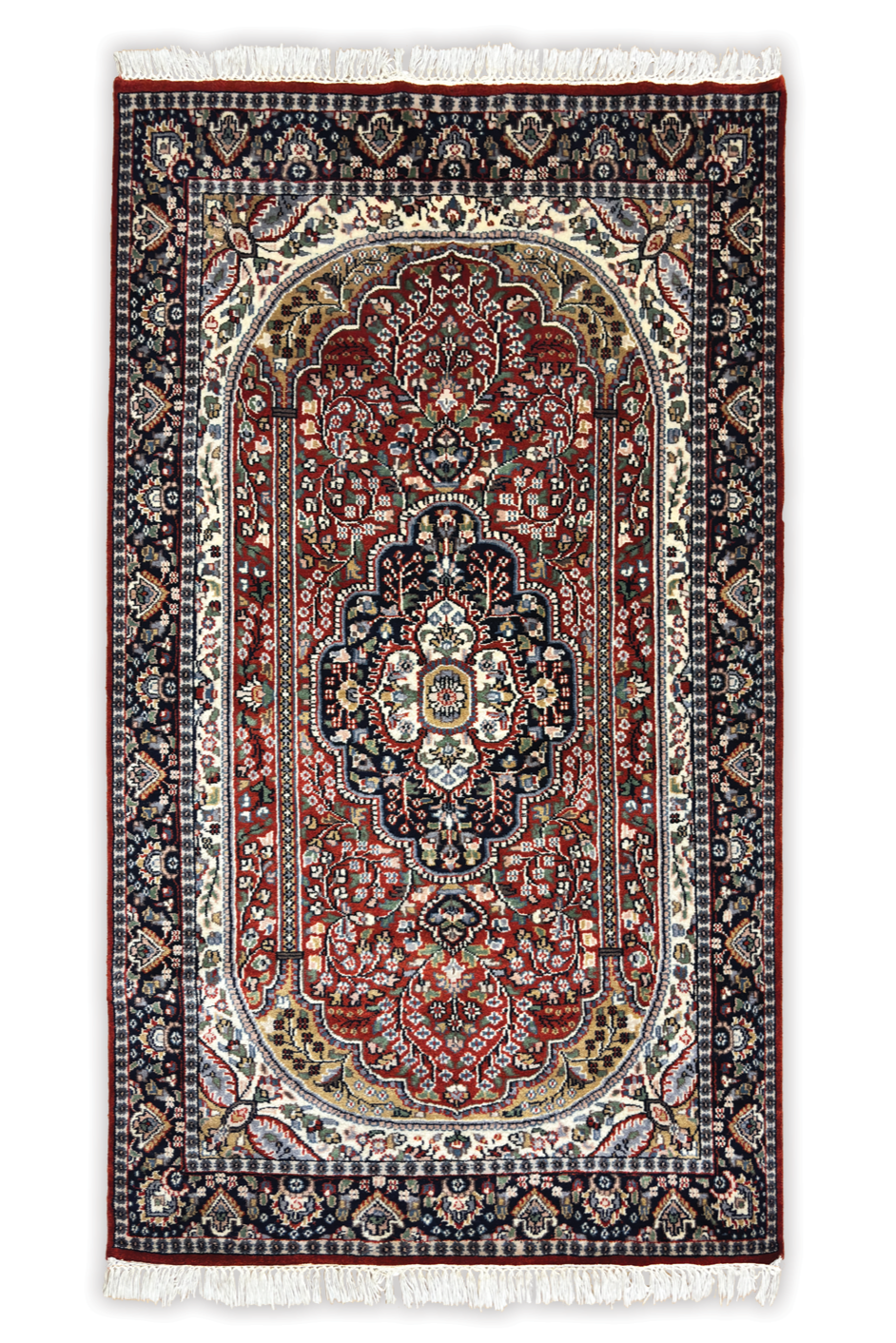 Designed for living rooms and bedrooms, Suhaila is a timeless companion to interiors that seek depth and refinement. The red provides warmth and energy, while the blue lends sophistication and grounding balance. A cultural masterpiece, Suhaila enhances the home with heritage woven into every knot.