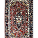 KR00279 Crimson Red/Midnight Blue Wool Hand Knotted Rug