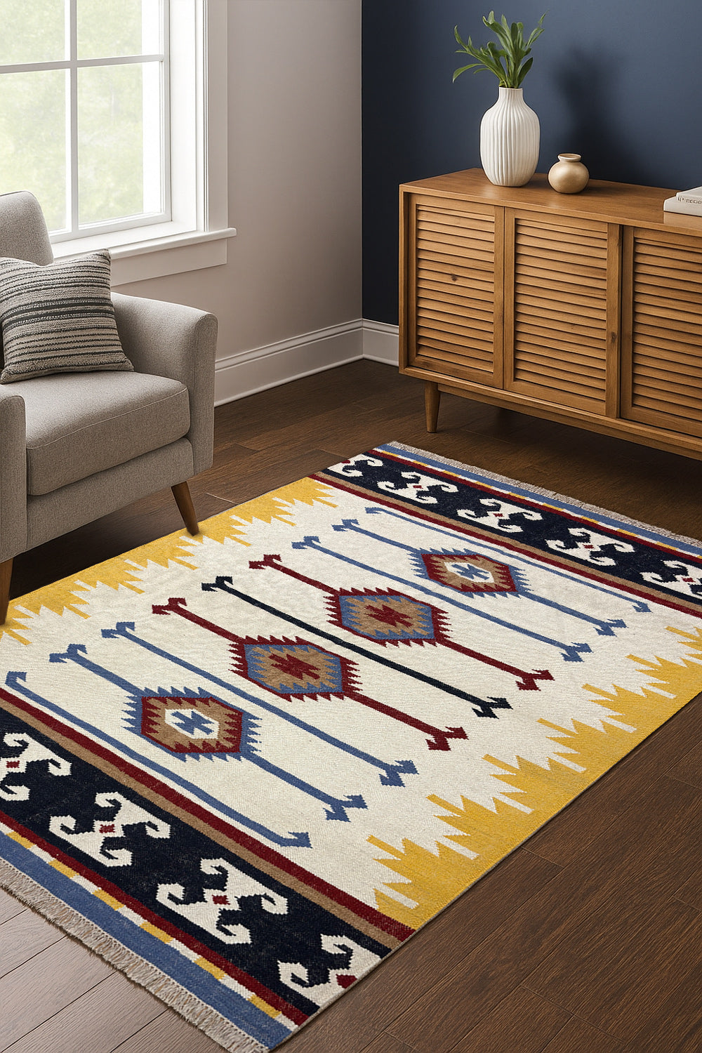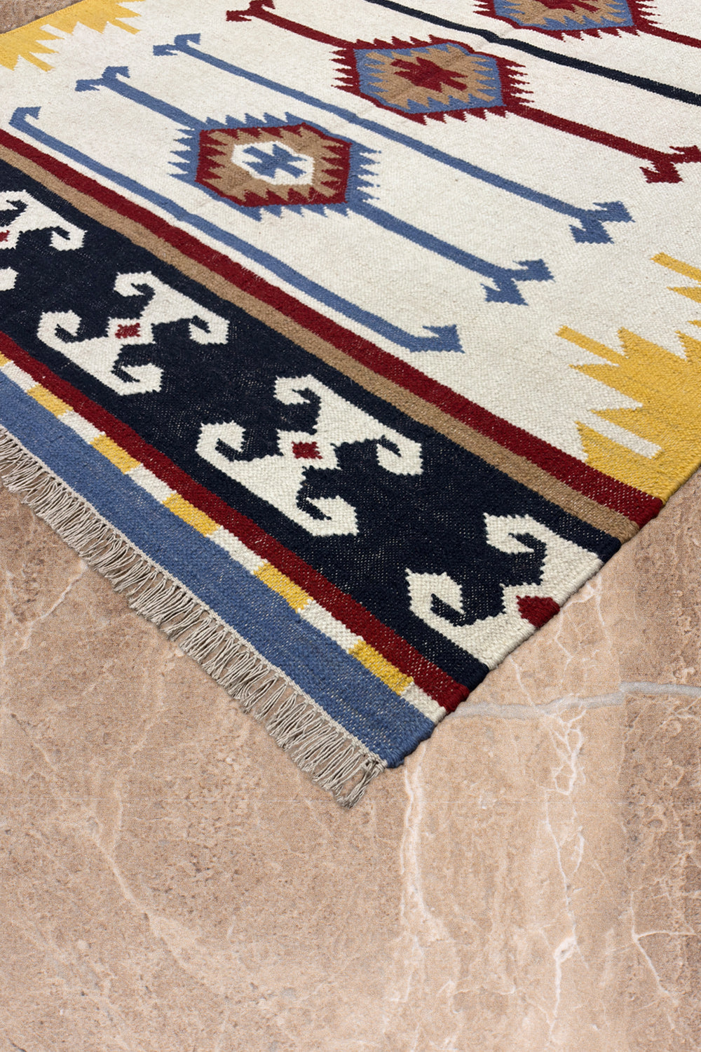 Taana Safar – Hand Woven Wool Rug in Ivory/Mustard