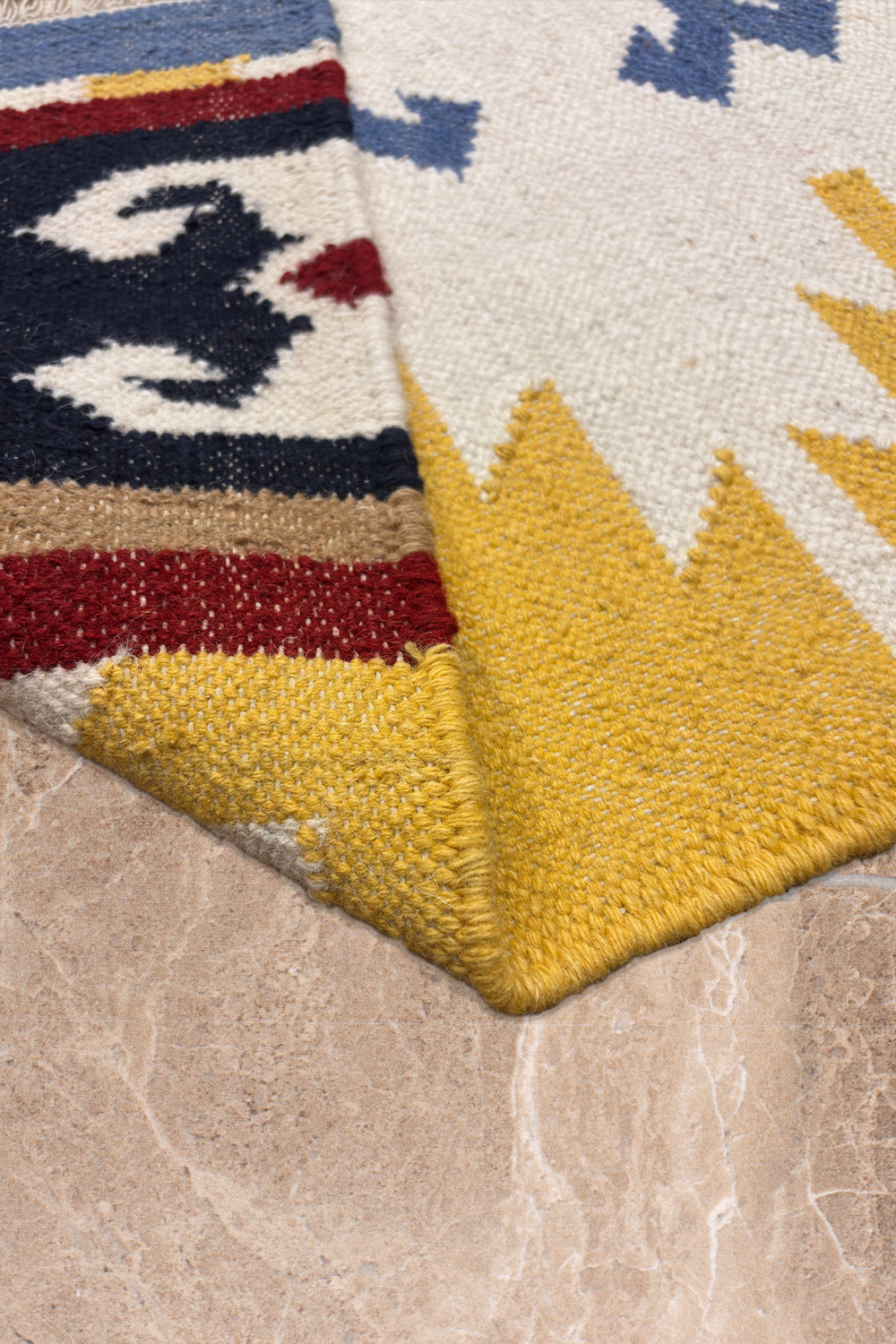 Both striking and serene, Taana Safar brings warmth and geometry to modern interiors. The ivory lends openness and light, while the mustard and red accents add character and depth — a contemporary piece born of heritage and hand.