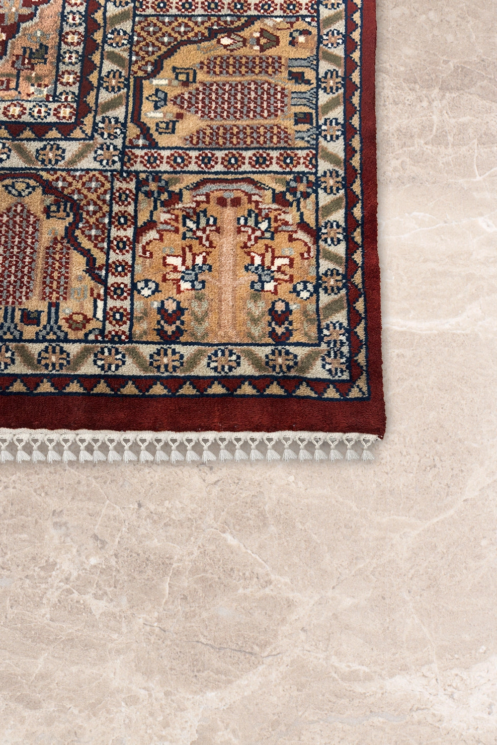 Tassavur – Hand Knotted Wool Rug in Maroon/Cream