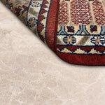 Hand-knotted in wool with a mild-soft, medium pile, this rug is designed to anchor living and dining spaces with warmth and heritage character. The harmonious blend of maroon and cream tones enhances the intricacy of the pattern while maintaining visual balance, allowing Tassavur to complement both classic and refined interiors.